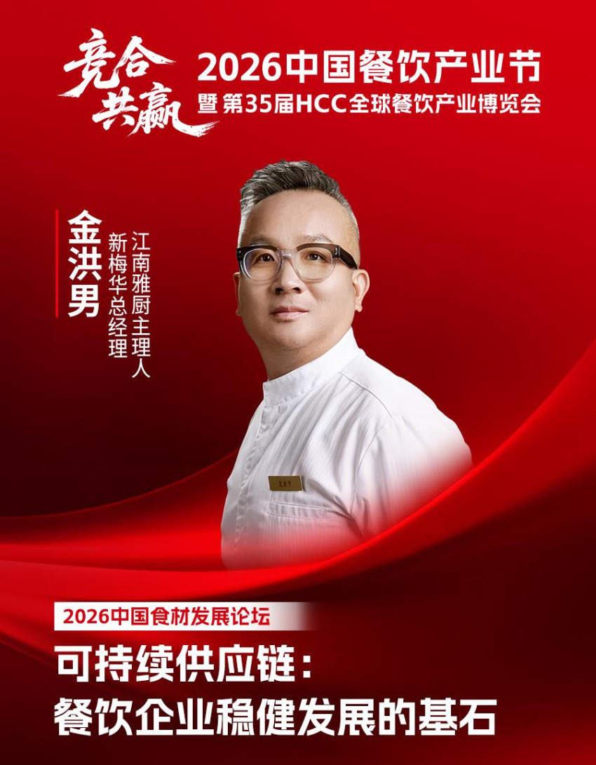 目前,新梅华总经理、江南雅厨主理人金洪男确认出席2026中国食材发展论坛,届时将在圆桌对话环节,就“可持续供应链:餐饮企业稳健发展的基石”议题,与餐饮品牌创始人及产业上下游领军人物,共研行业发展新路径,为餐饮产业高质量发展凝聚新动能。