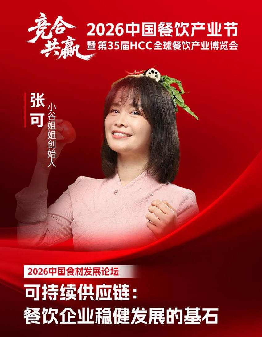 目前,小谷姐姐创始人张可确认出席2026中国食材发展论坛,届时将在圆桌对话环节,就“可持续供应链:餐饮企业稳健发展的基石”议题,与餐饮品牌创始人及产业上下游领军人物,共研行业发展新路径,为餐饮产业高质量发展凝聚新动能。