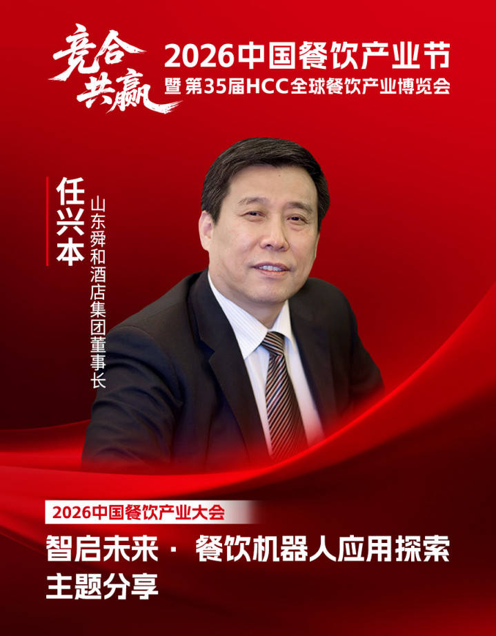 目前,山东舜和酒店集团董事长任兴本确认出席2026中国餐饮产业大会,届时将登台围绕“智启未来・餐饮机器人应用探索”展开分享,与餐饮品牌创始人及产业上下游领军人物,共探新时代中国餐饮产业高质量发展新路径。