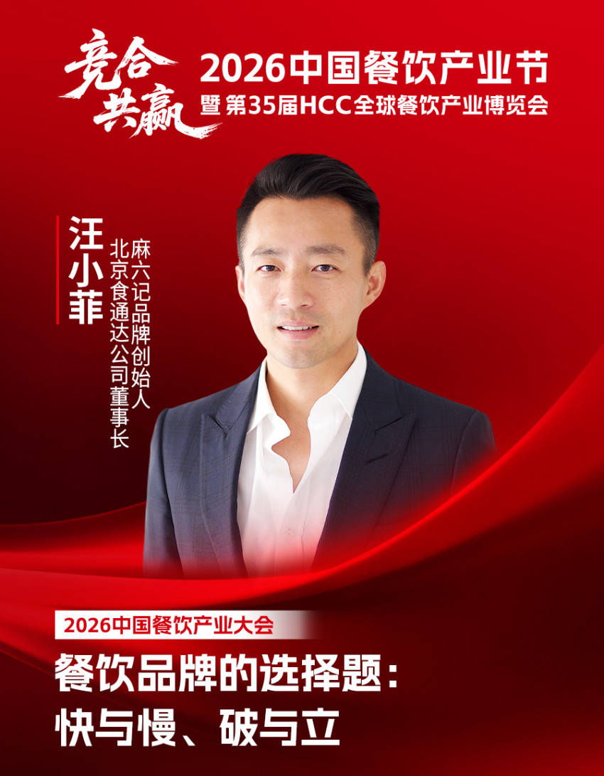 目前,麻六记品牌创始人汪小菲确认出席2026中国餐饮产业大会,届时将在圆桌对话环节,就“餐饮品牌的选择题:快与慢、破与立”议题,与餐饮品牌创始人及产业上下游领军人物,共研行业发展新路径,为餐饮产业高质量发展凝聚新动能。