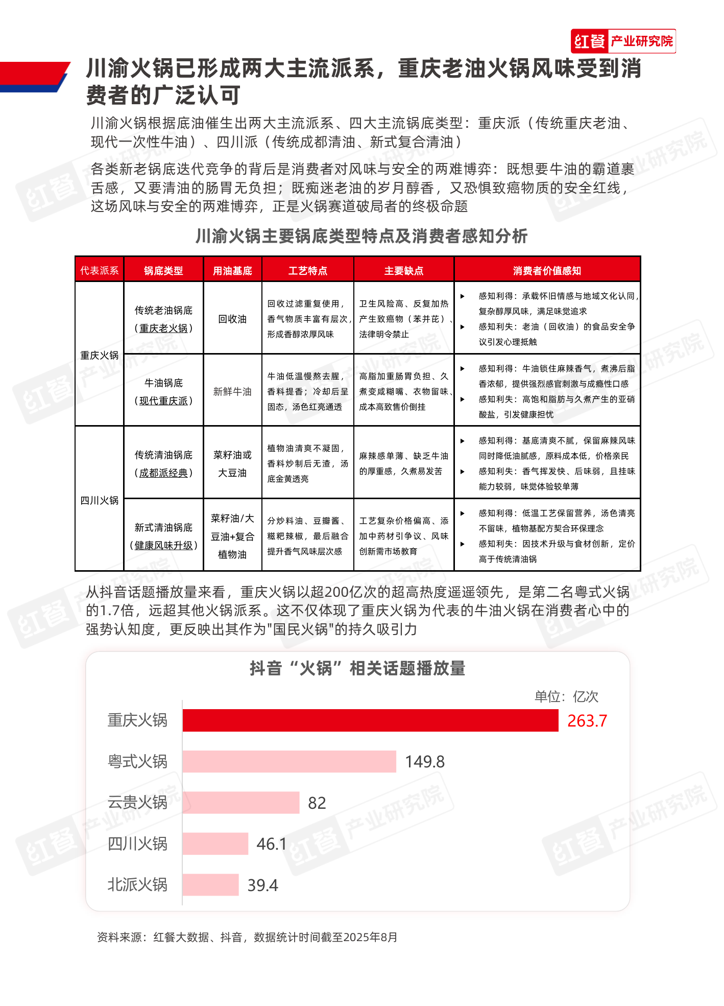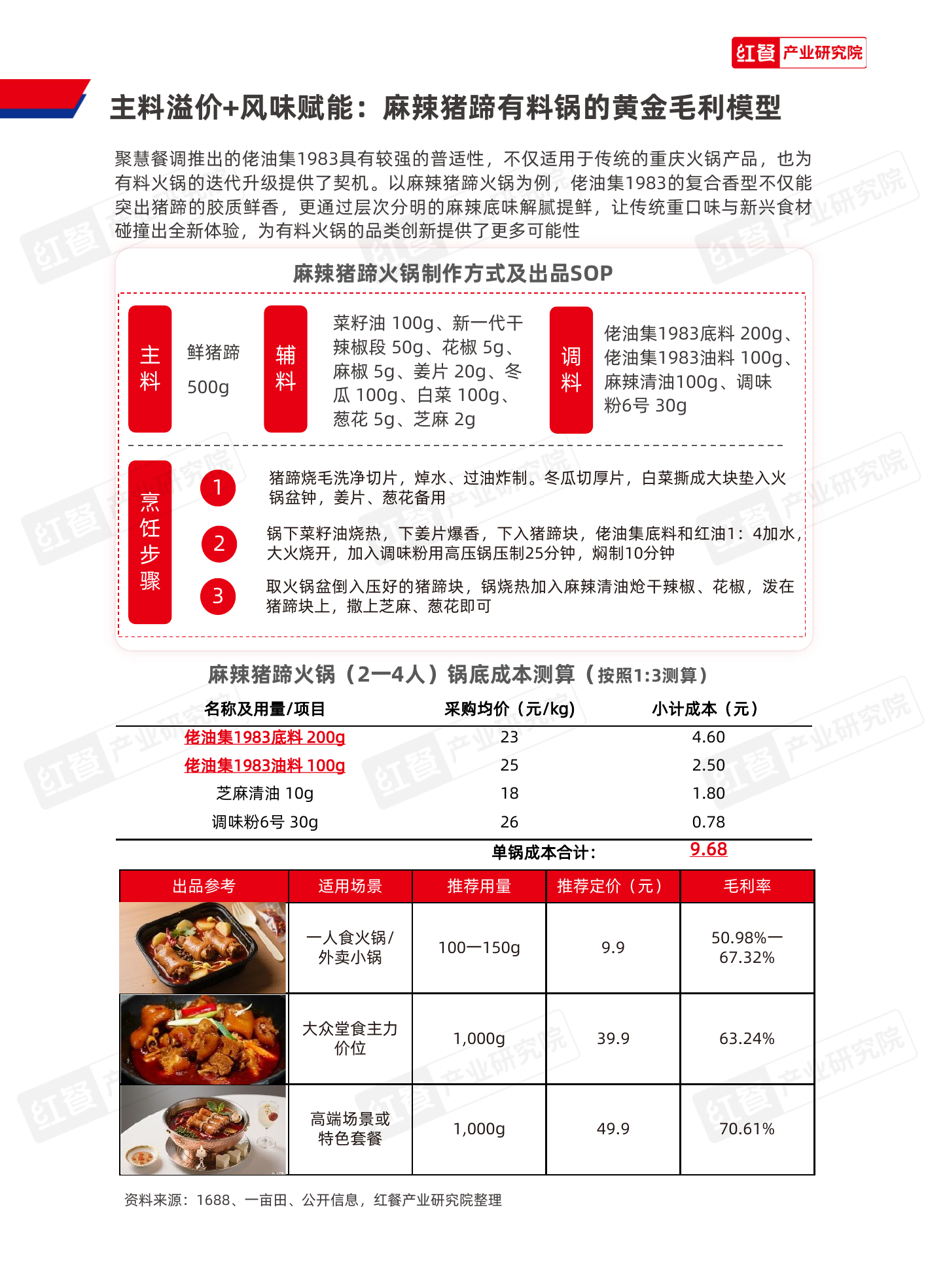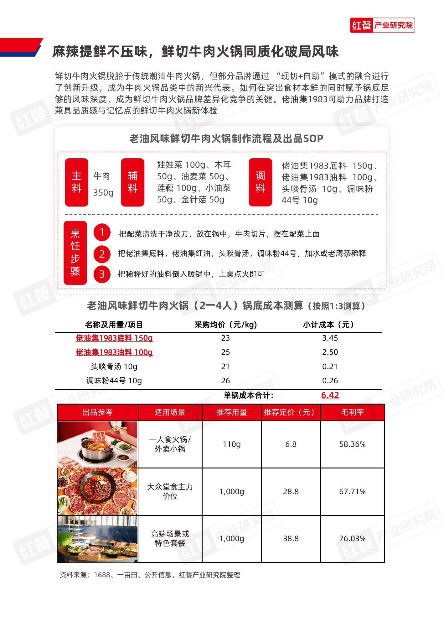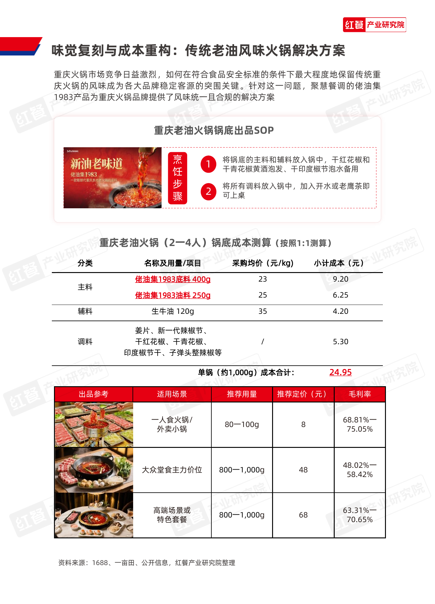 为解决重庆老油火锅的锅底难题,红餐产业研究院发布了《中国餐饮供应链研究报告——地道重庆老火锅应用方案》。电子版供限时领取,速看!👇 👇