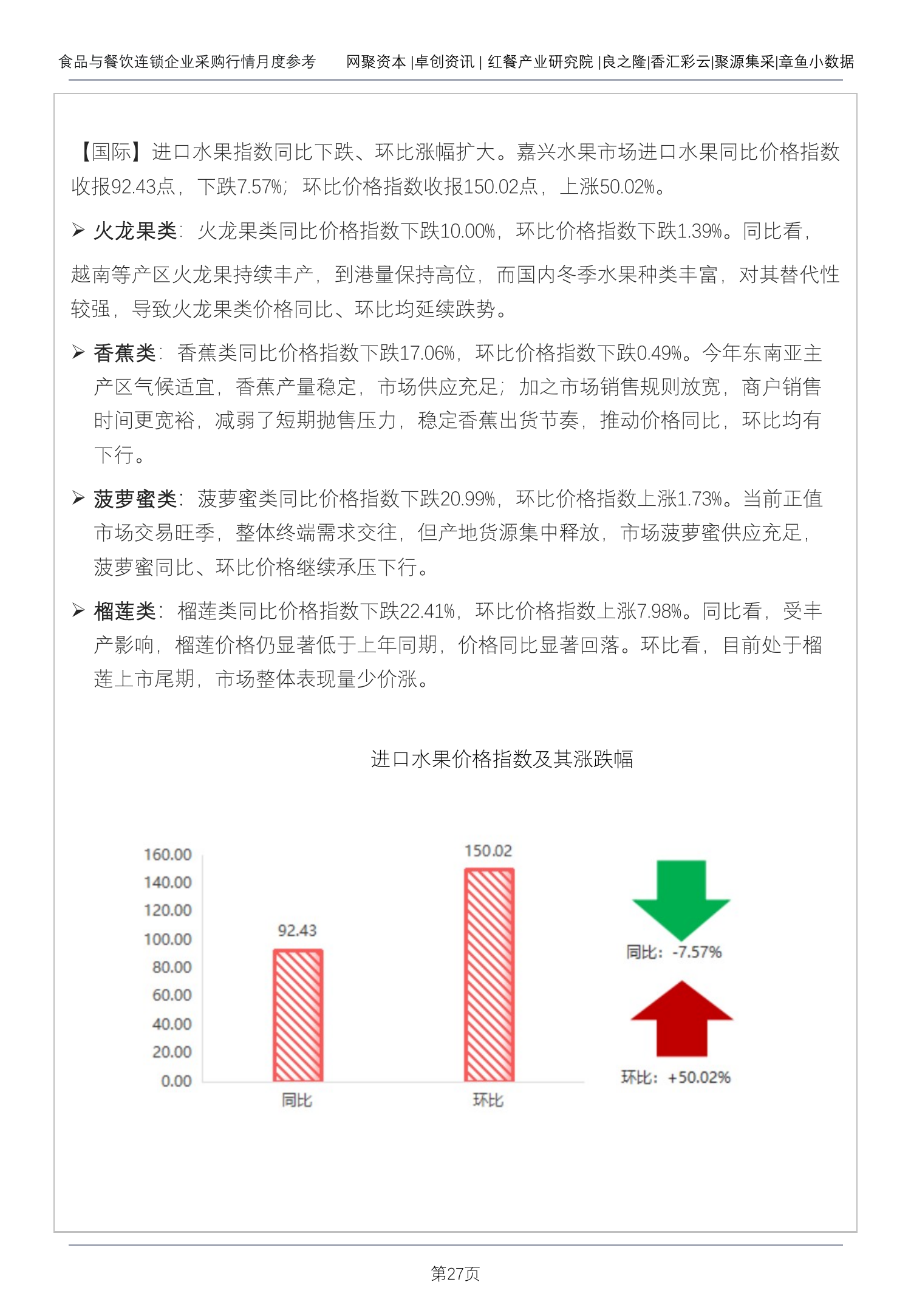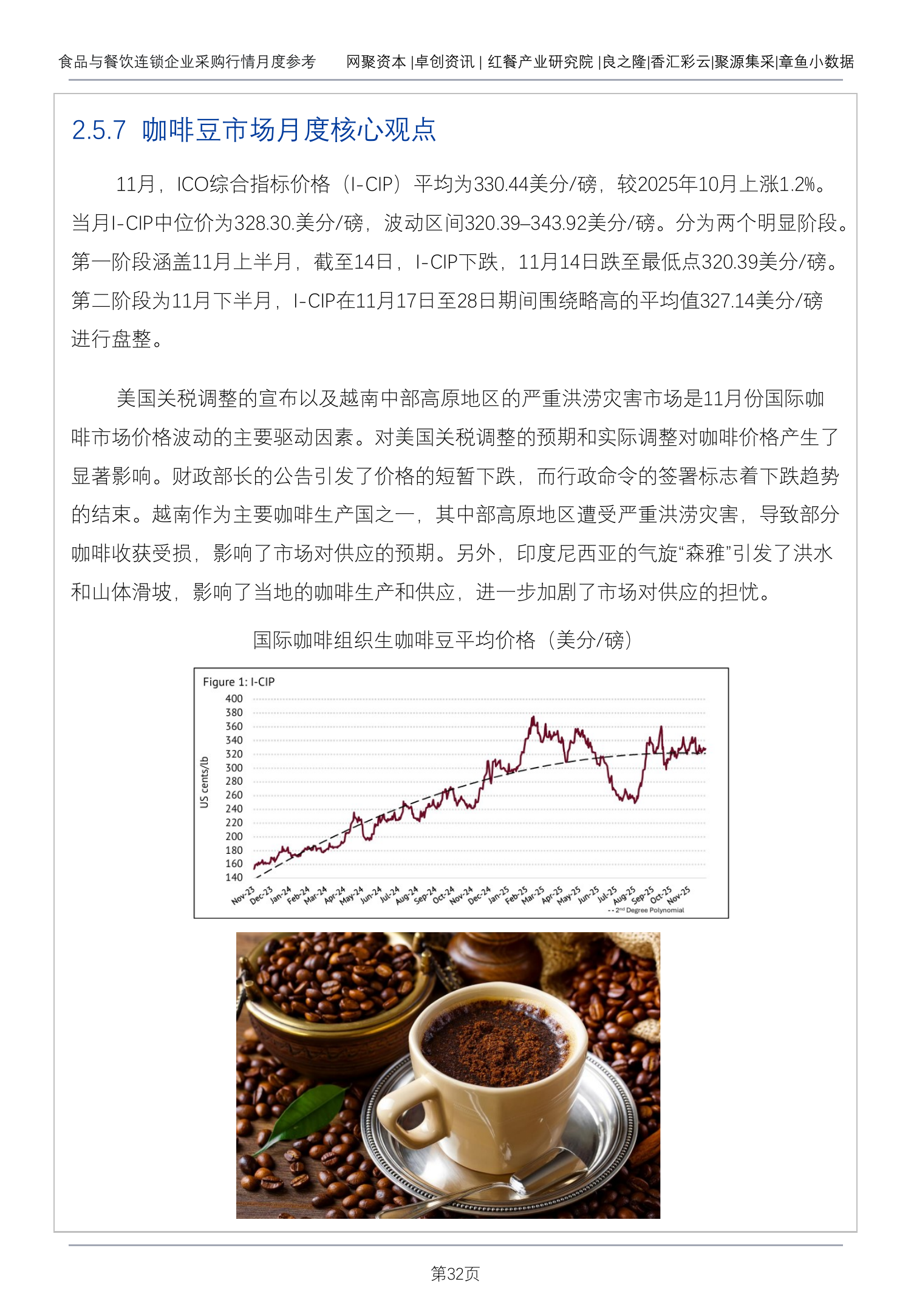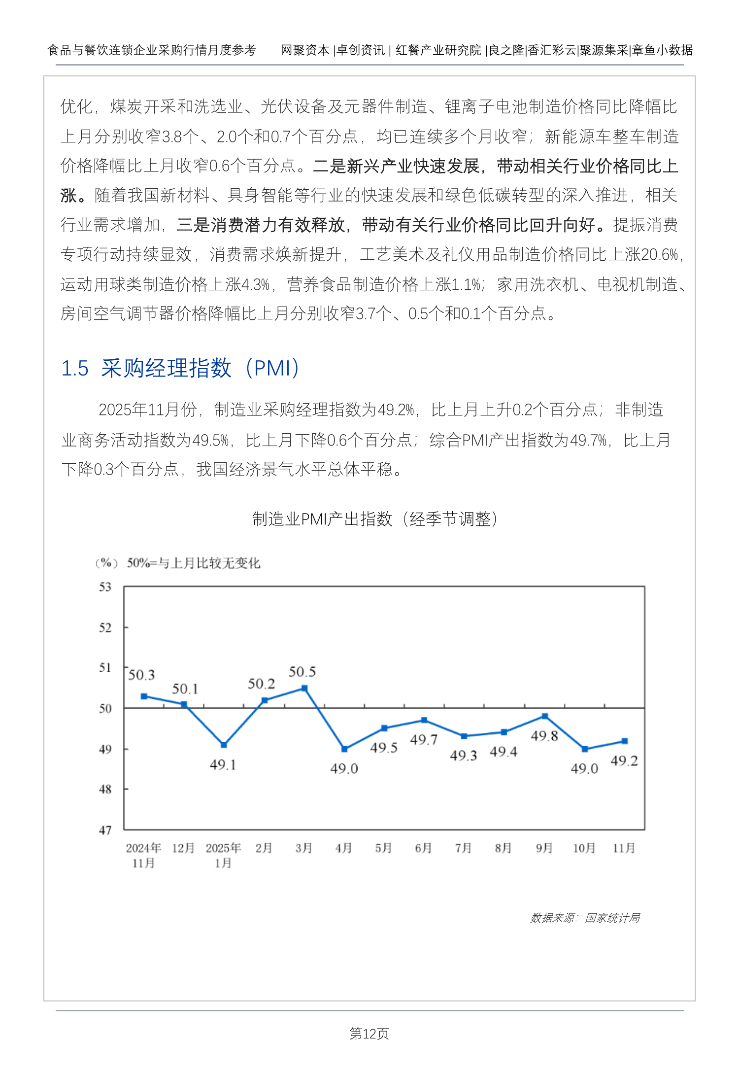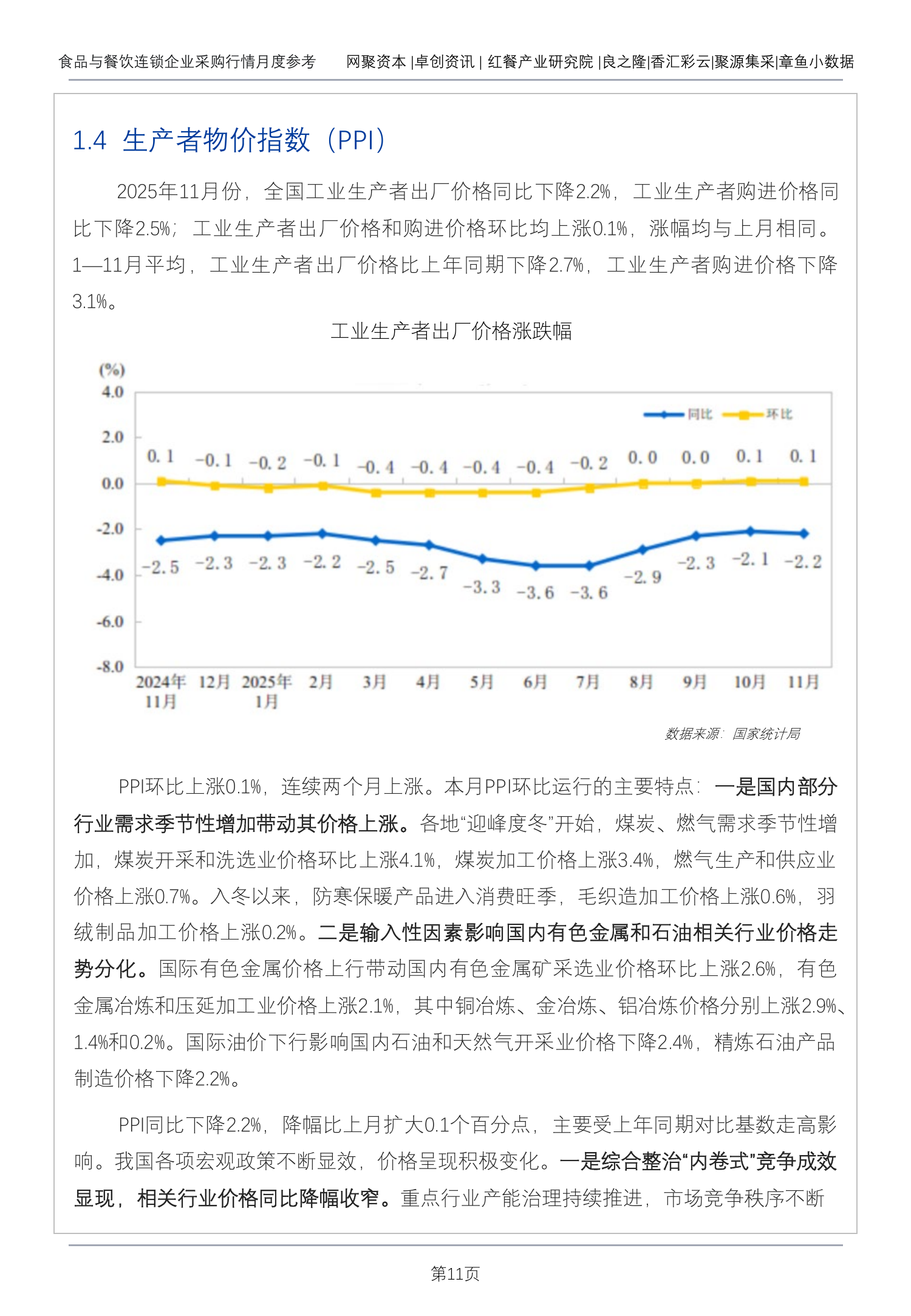 由网聚资本、红餐产业研究院、良之隆、大庄园、香汇彩云、聚源集采、章鱼小数据联合出品的《食品与餐饮连锁企业采购行情月度参考(2025.12)》正式发布。