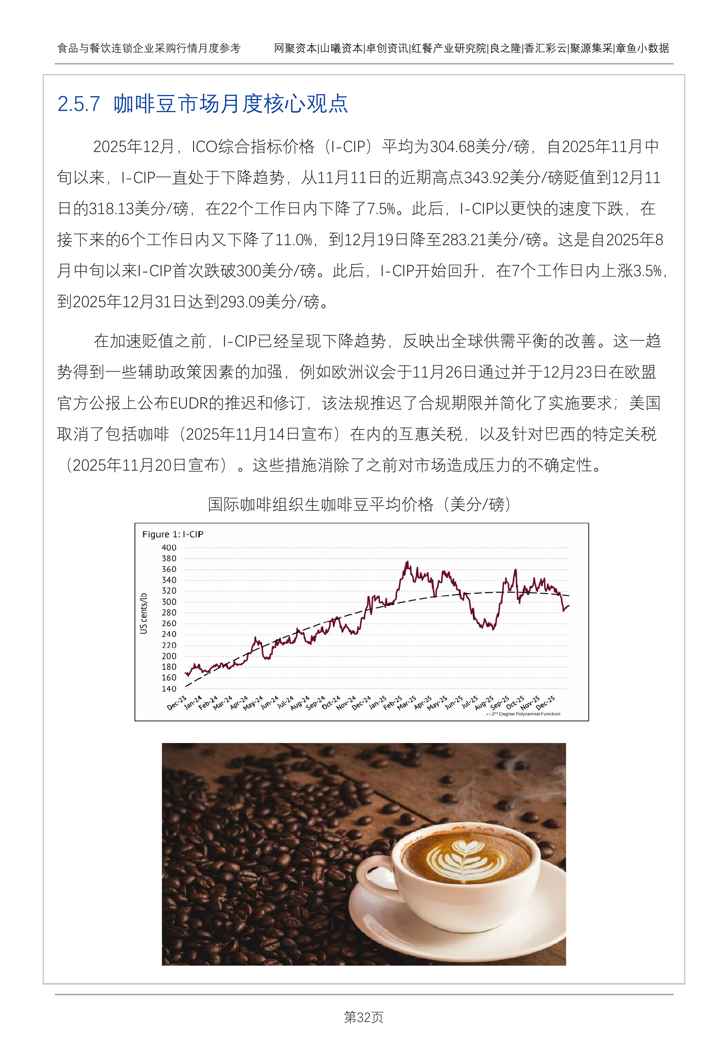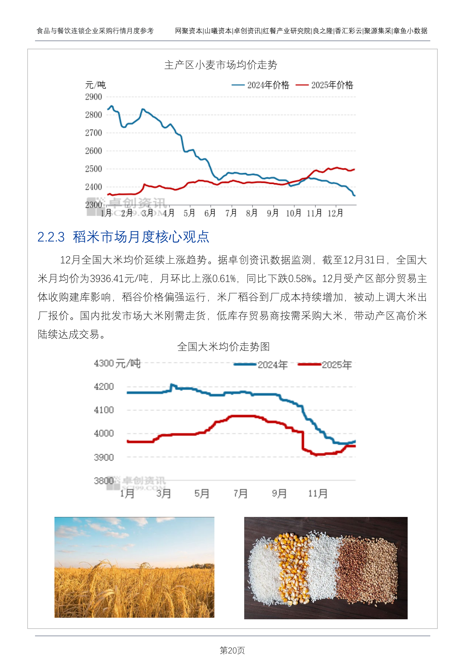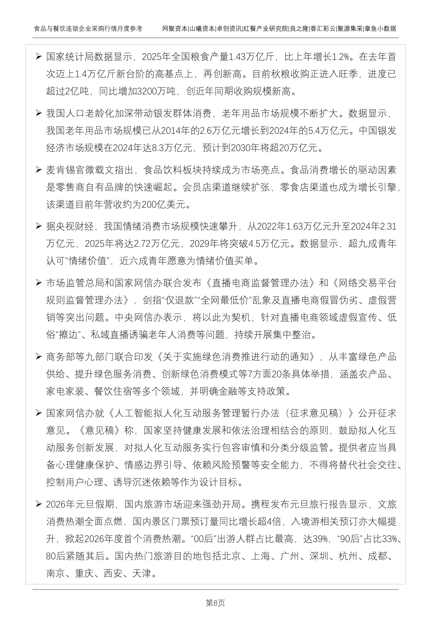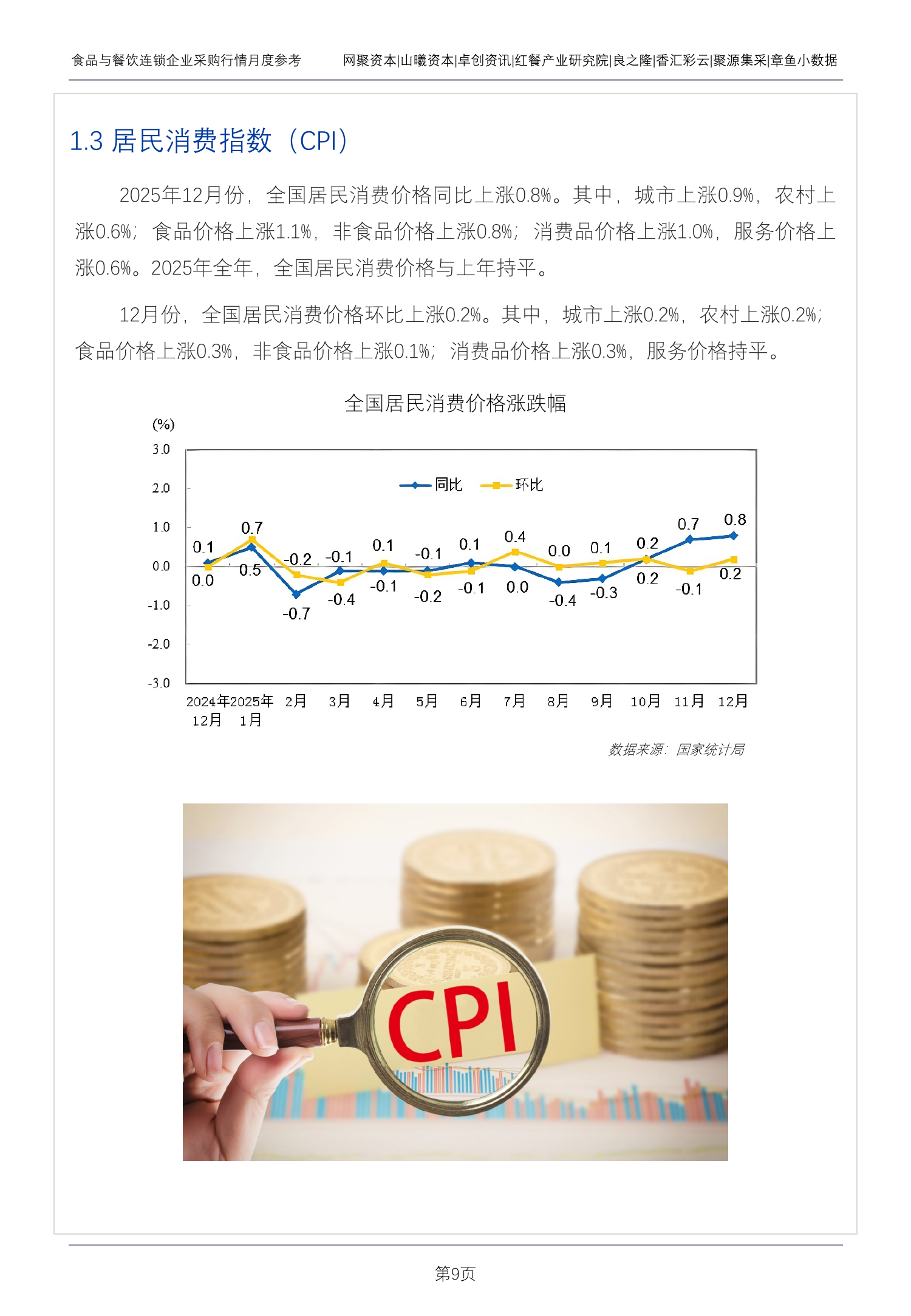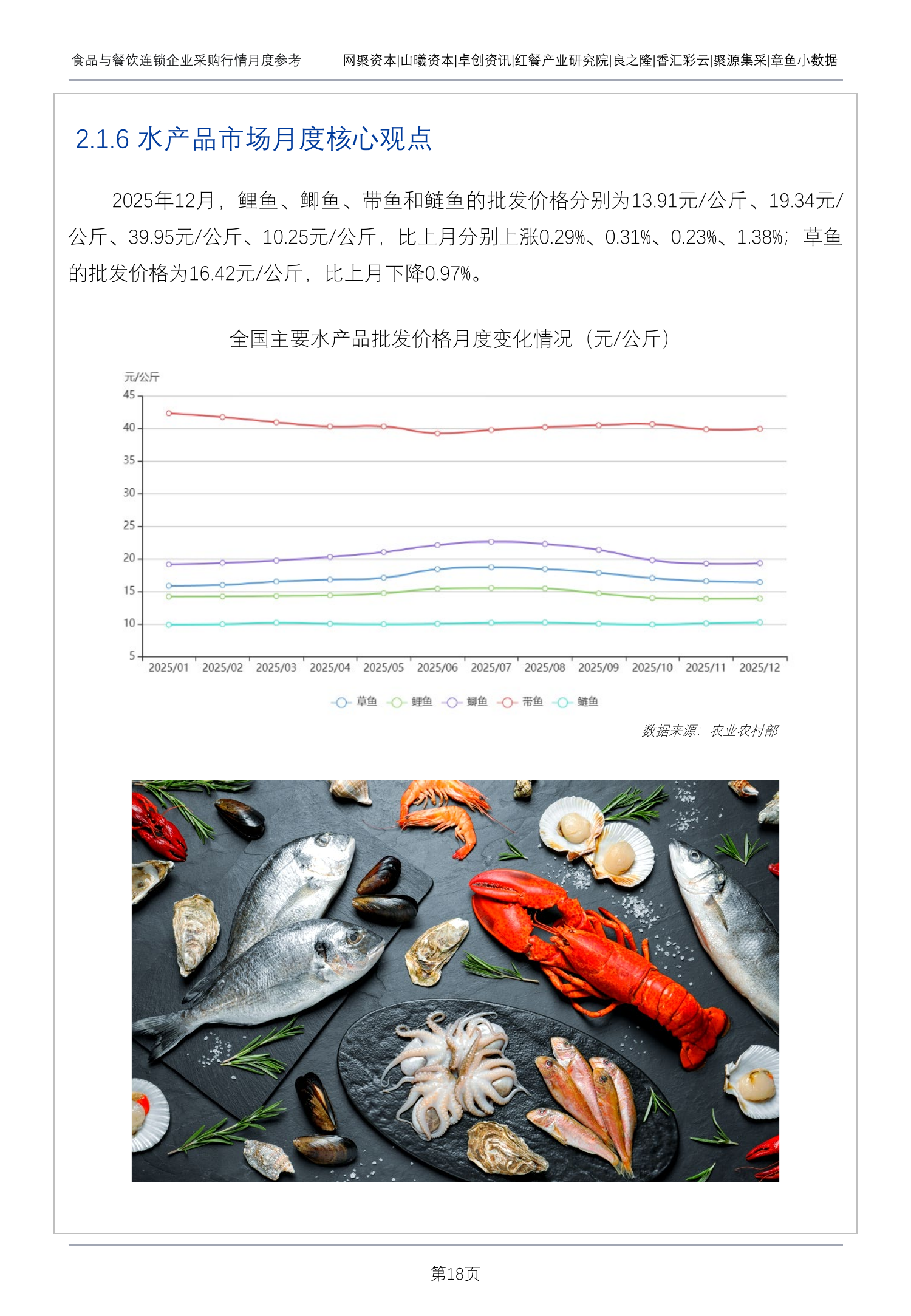 由网聚资本、红餐产业研究院、良之隆、大庄园、香汇彩云、聚源集采、章鱼小数据联合出品的《食品与餐饮连锁企业采购行情月度参考(2026.01)》正式发布。