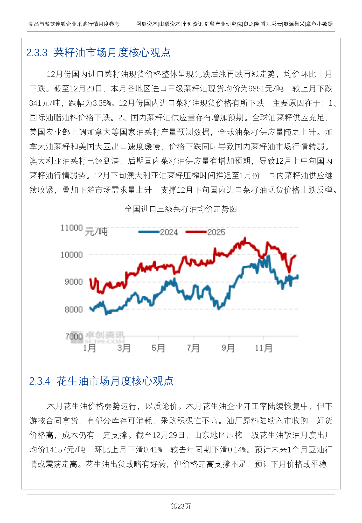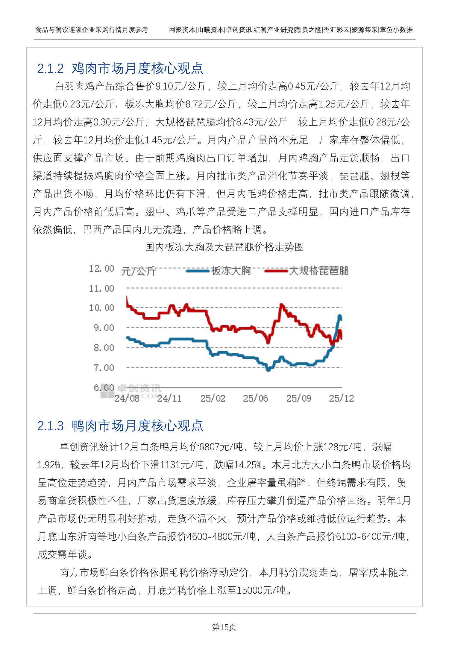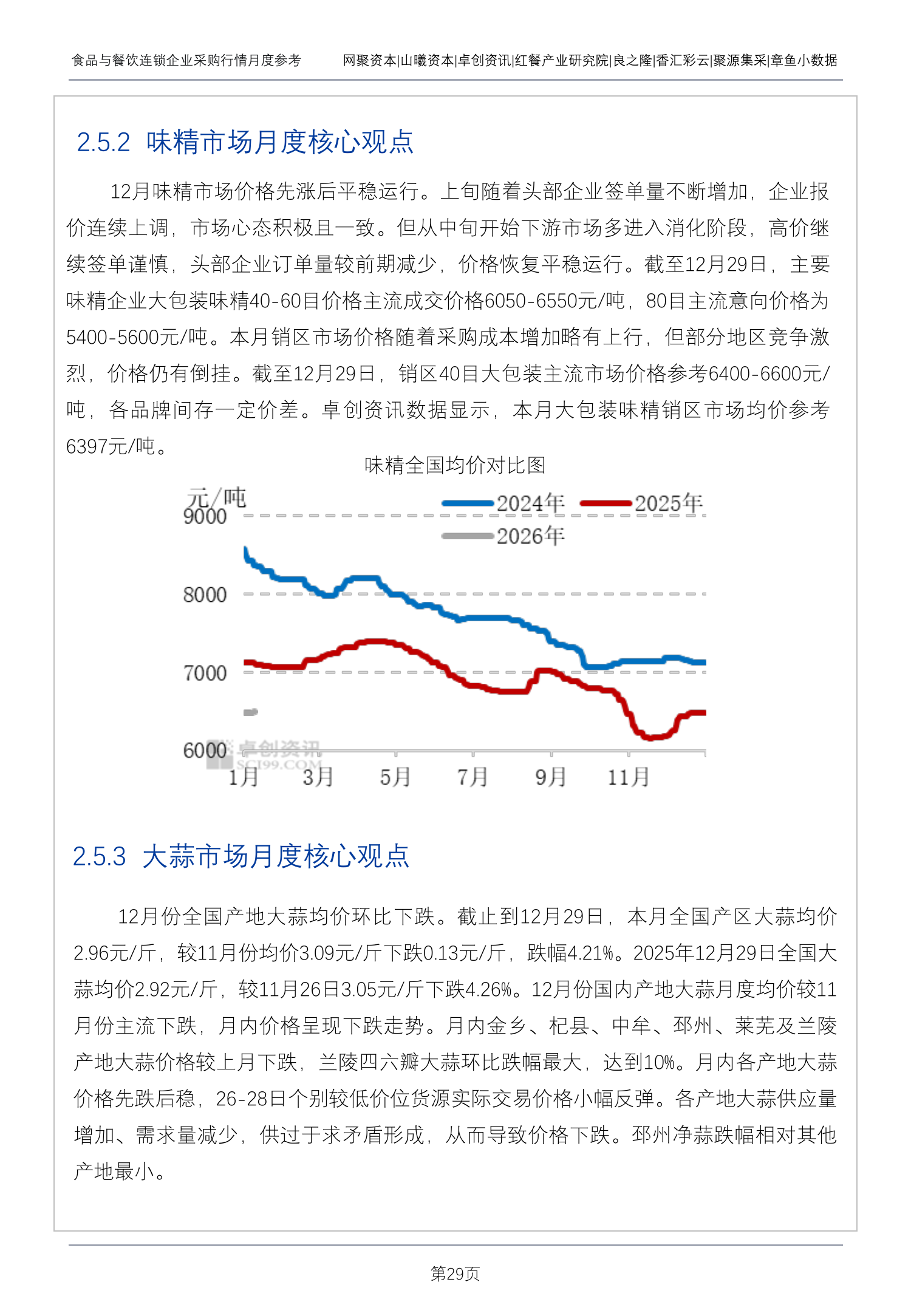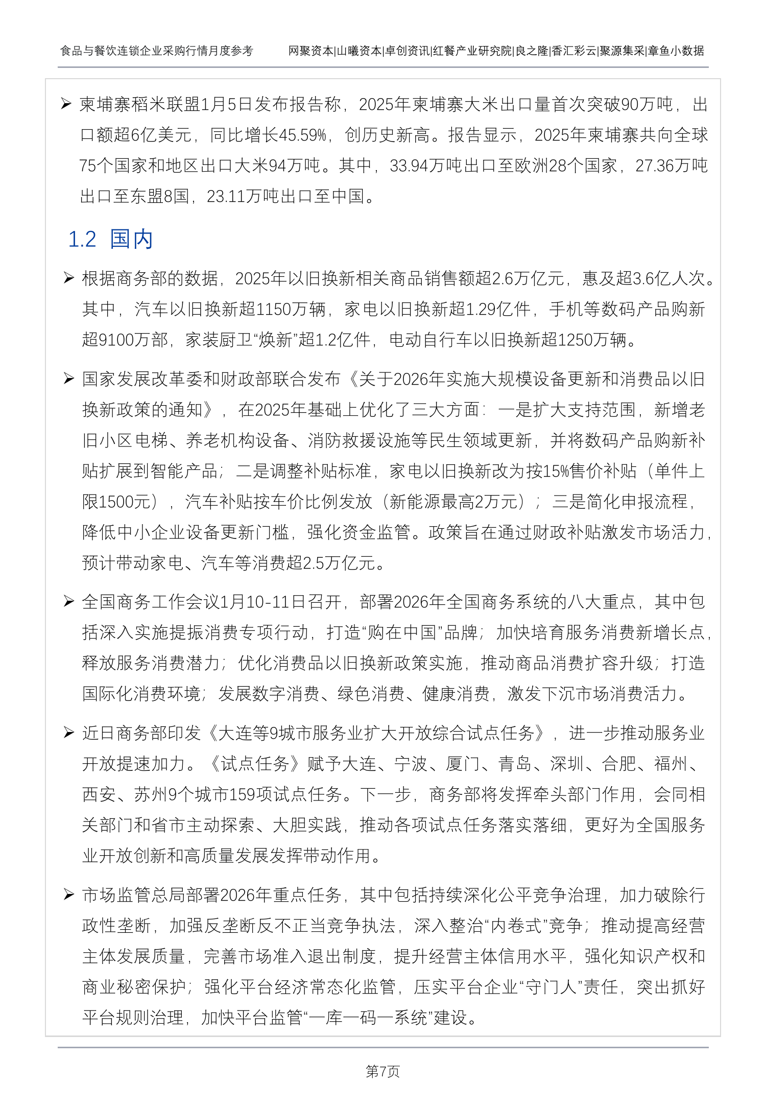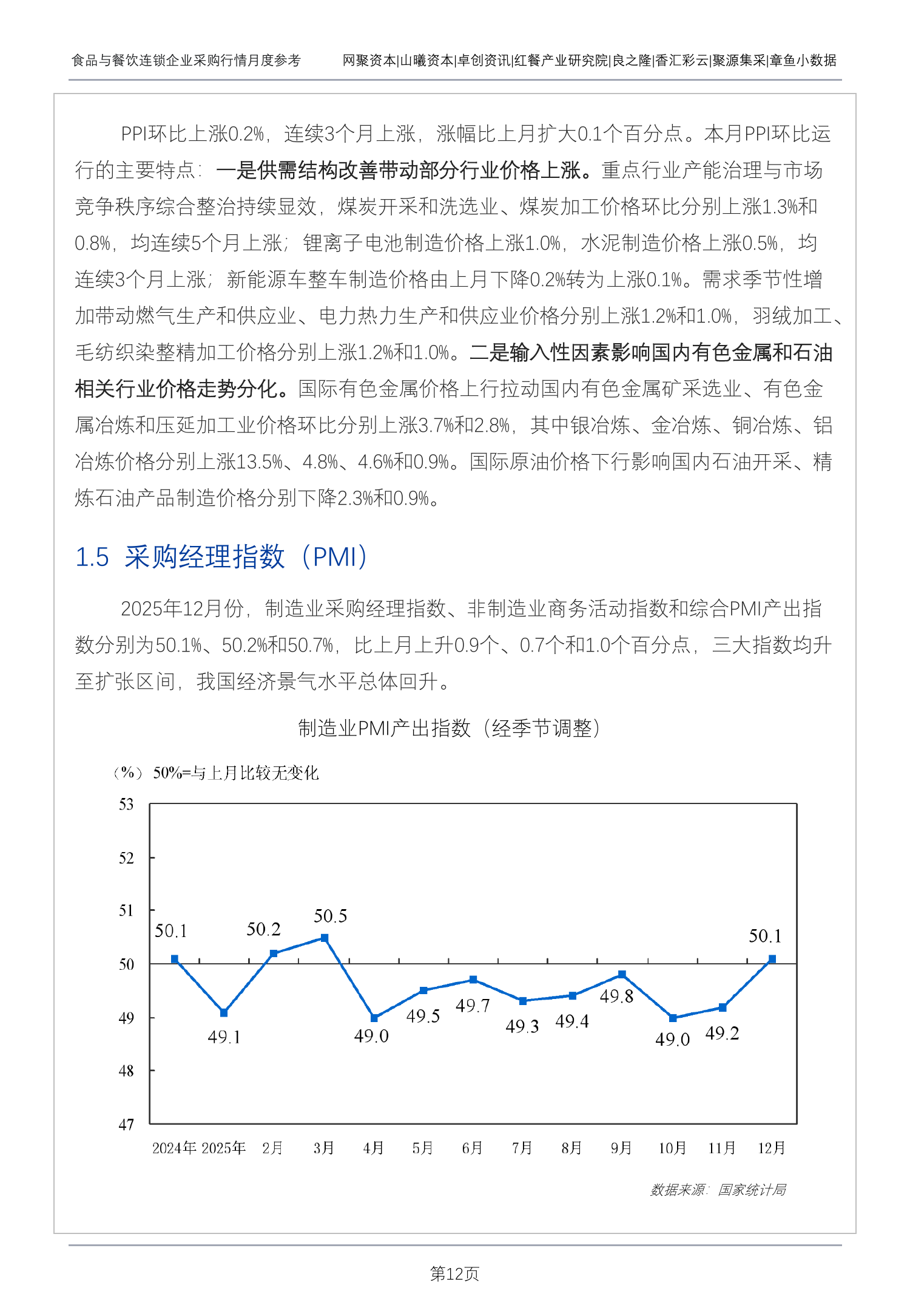 由网聚资本、红餐产业研究院、良之隆、大庄园、香汇彩云、聚源集采、章鱼小数据联合出品的《食品与餐饮连锁企业采购行情月度参考(2026.01)》正式发布。