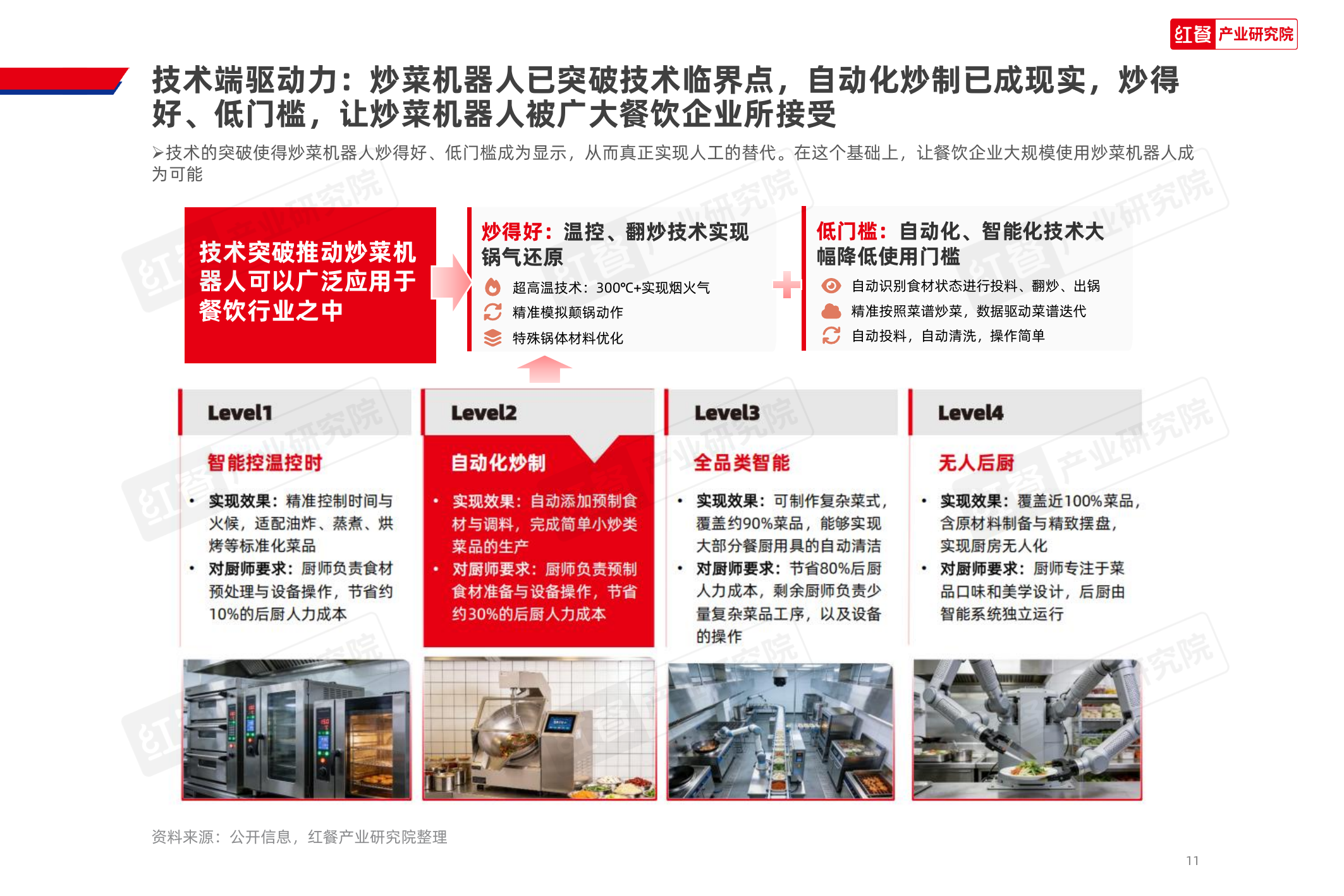 为了研究炒菜机器人的发展态势以及对餐饮行业的影响,红餐产业研究院联合拓邦·厨纪发布了《餐饮AI炒菜机器人研究报告2026。
