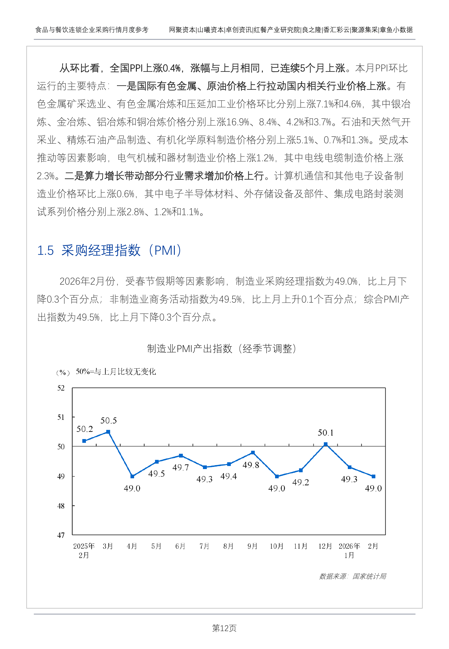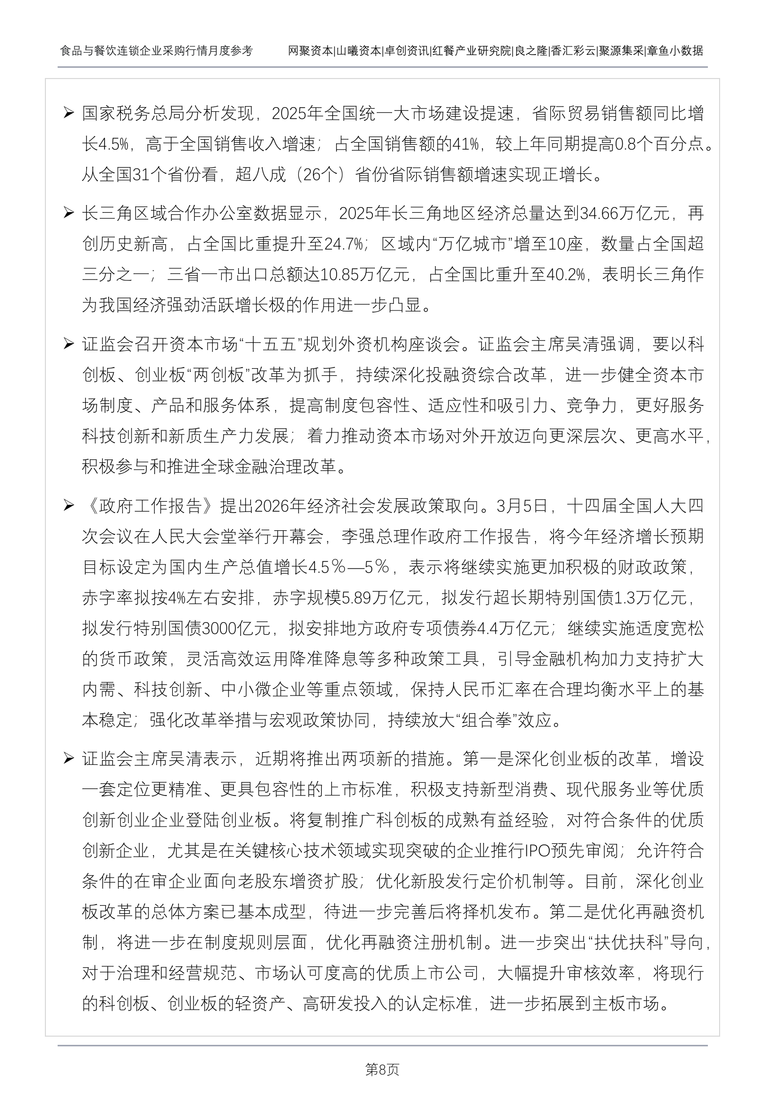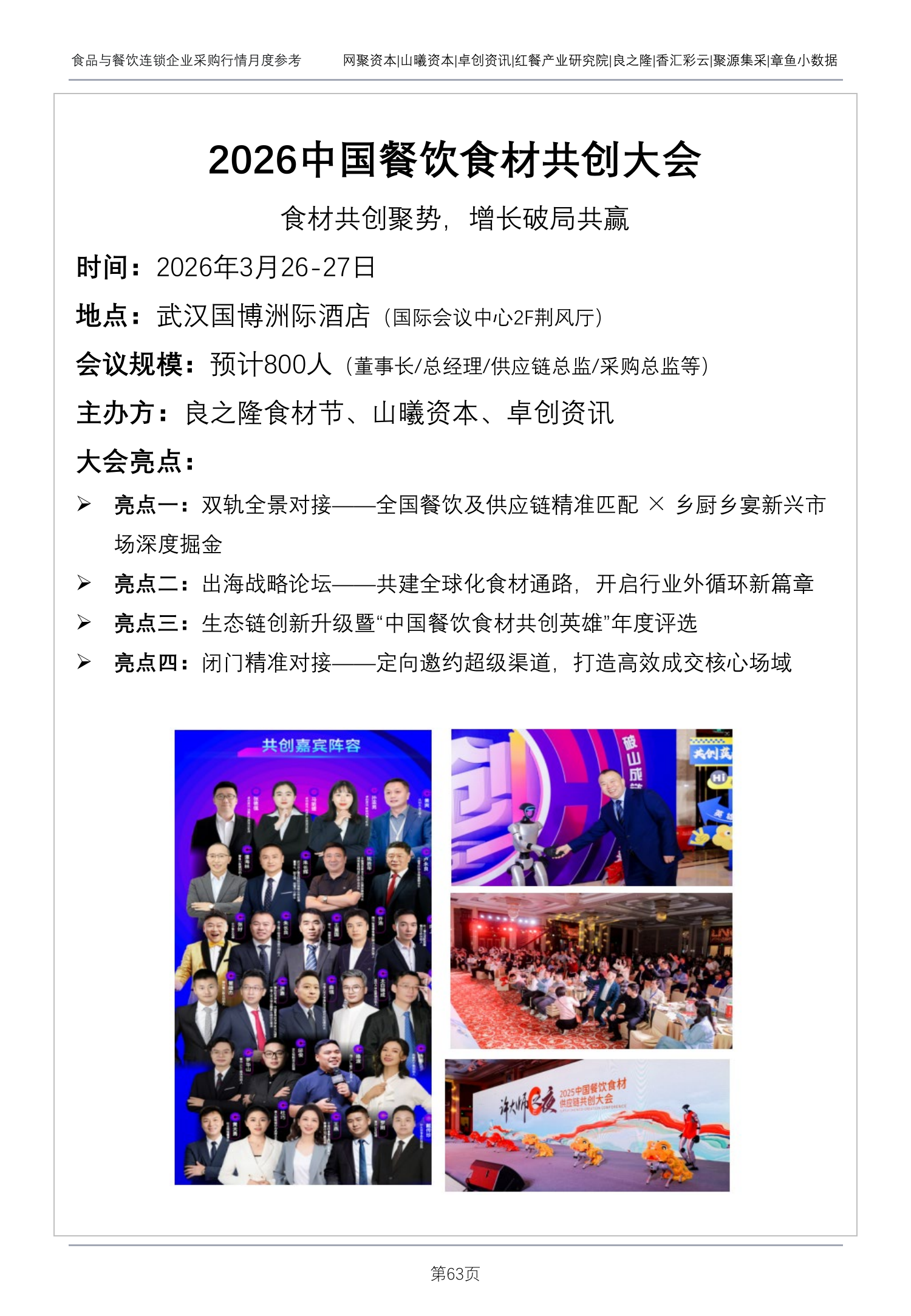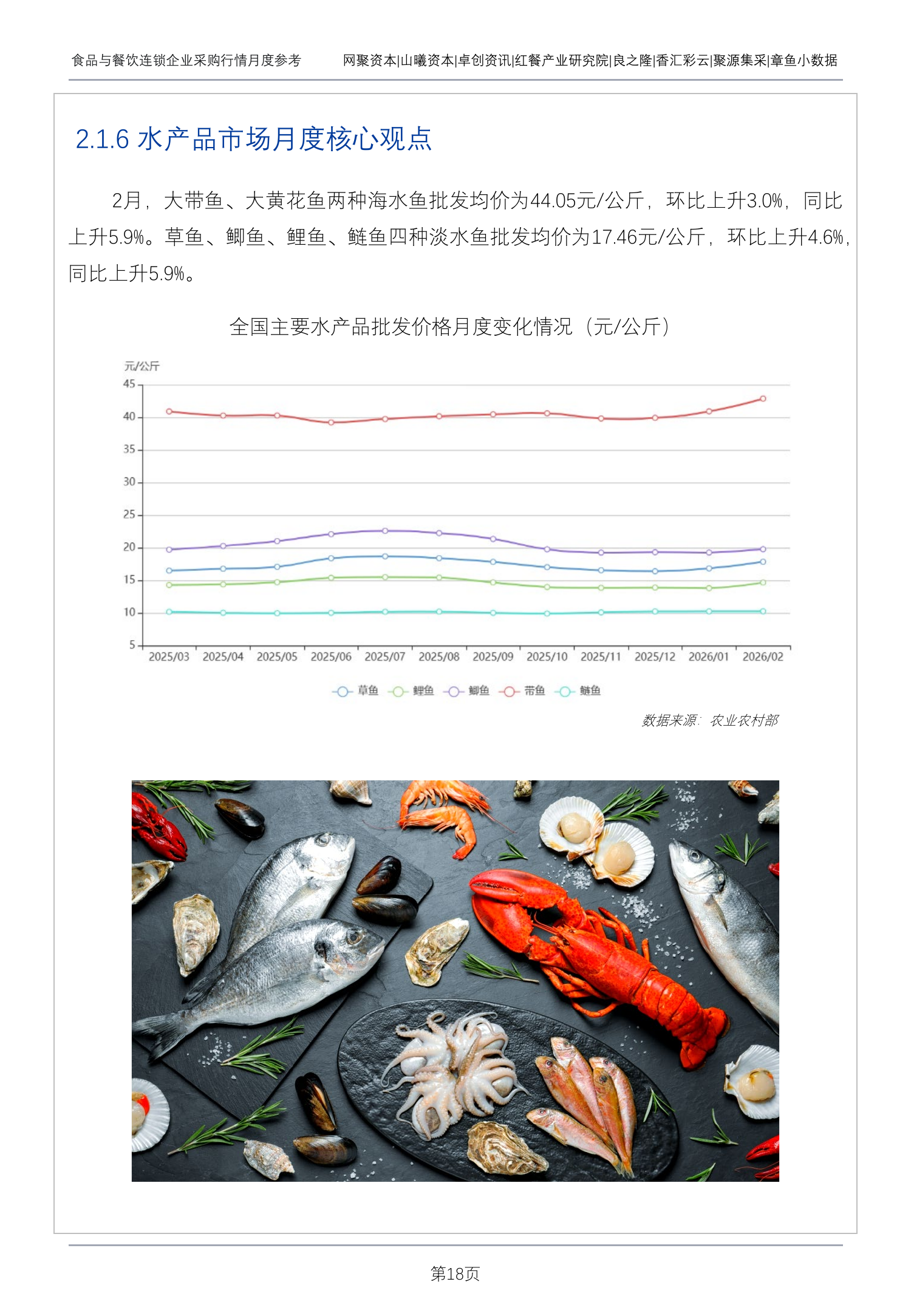 由网聚资本、红餐产业研究院、良之隆、大庄园、香汇彩云、聚源集采、章鱼小数据联合出品的《食品与餐饮连锁企业采购行情月度参考(2026.02)》正式发布。
