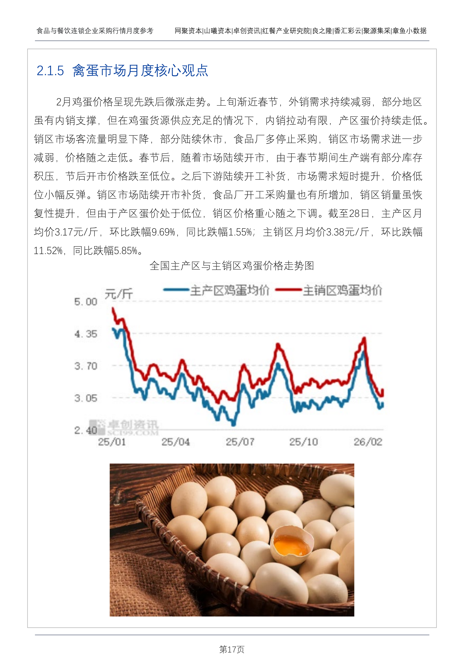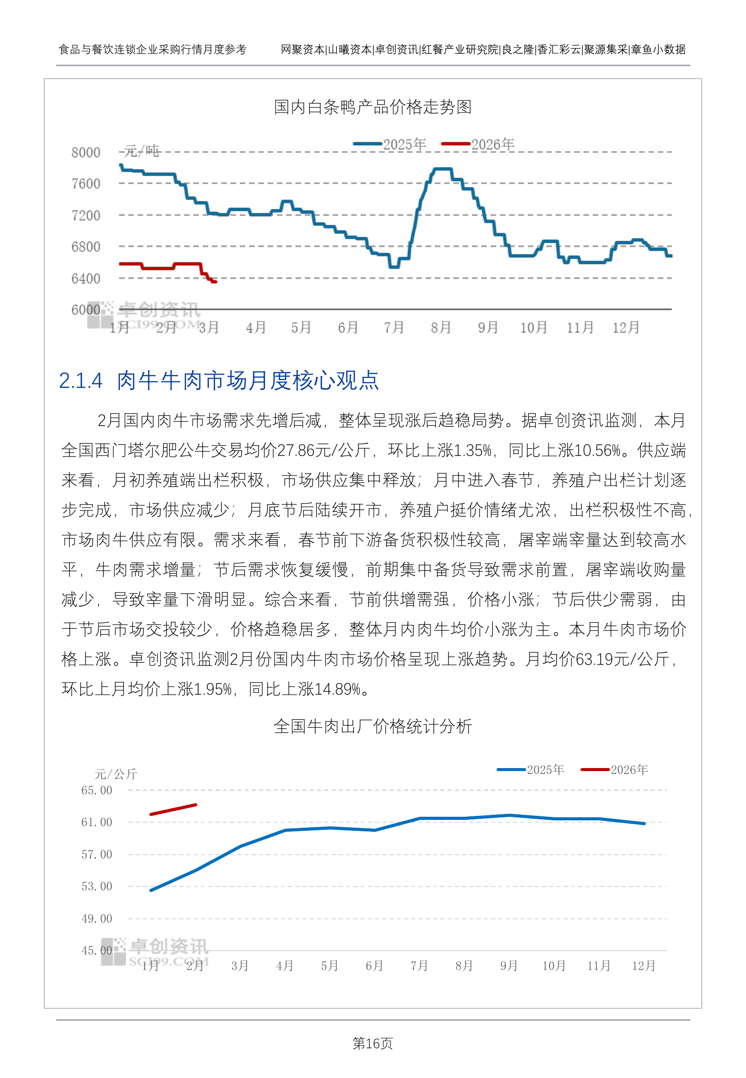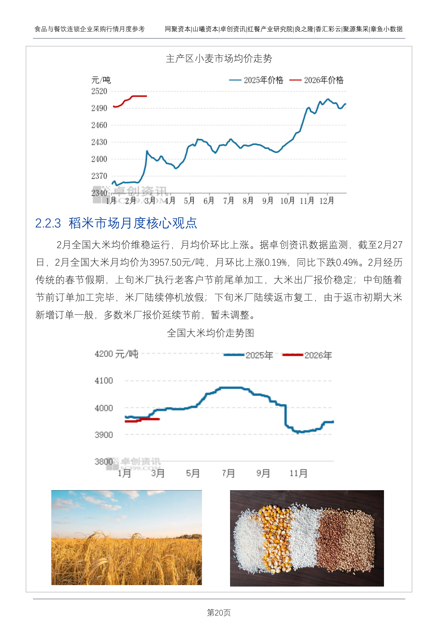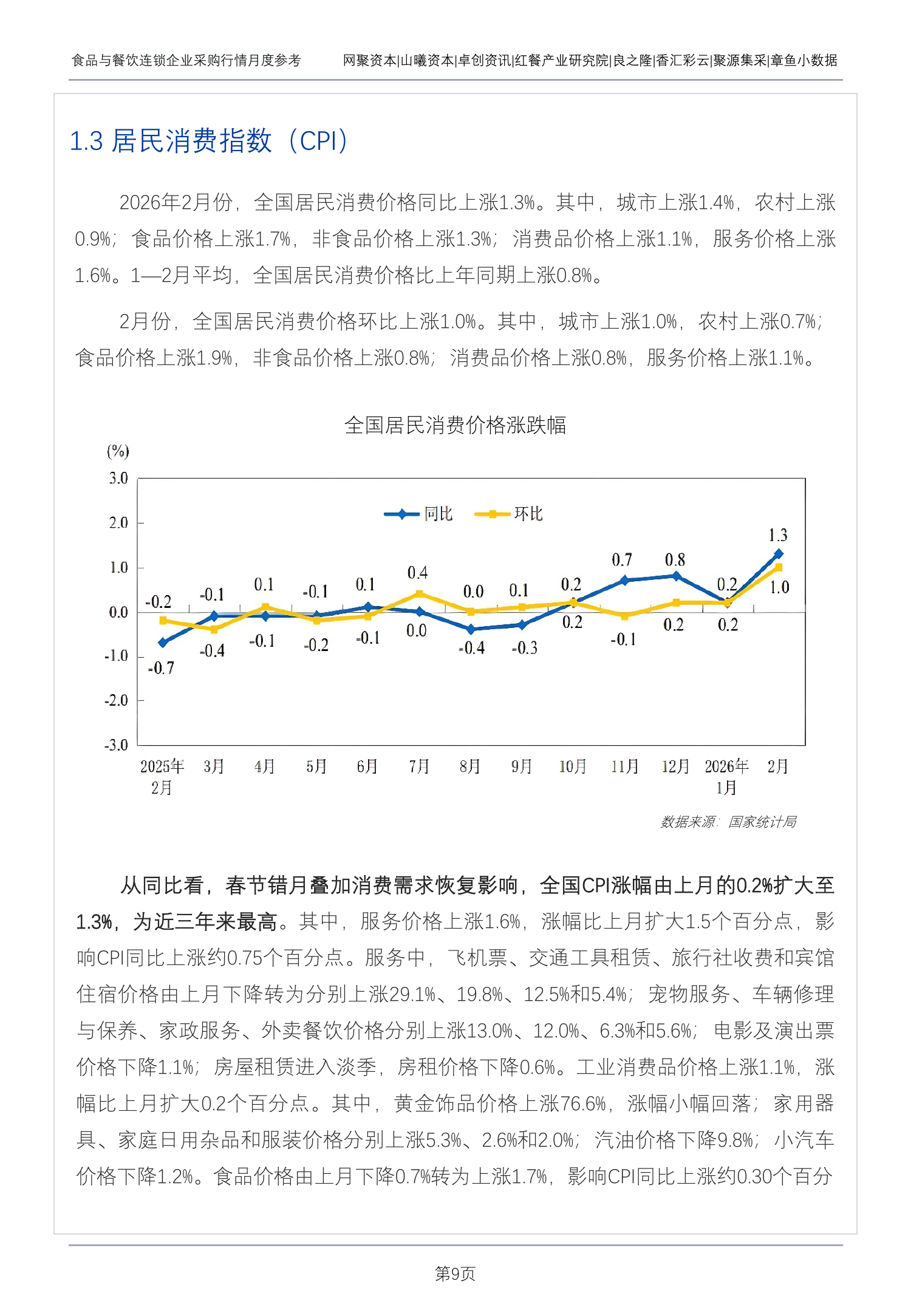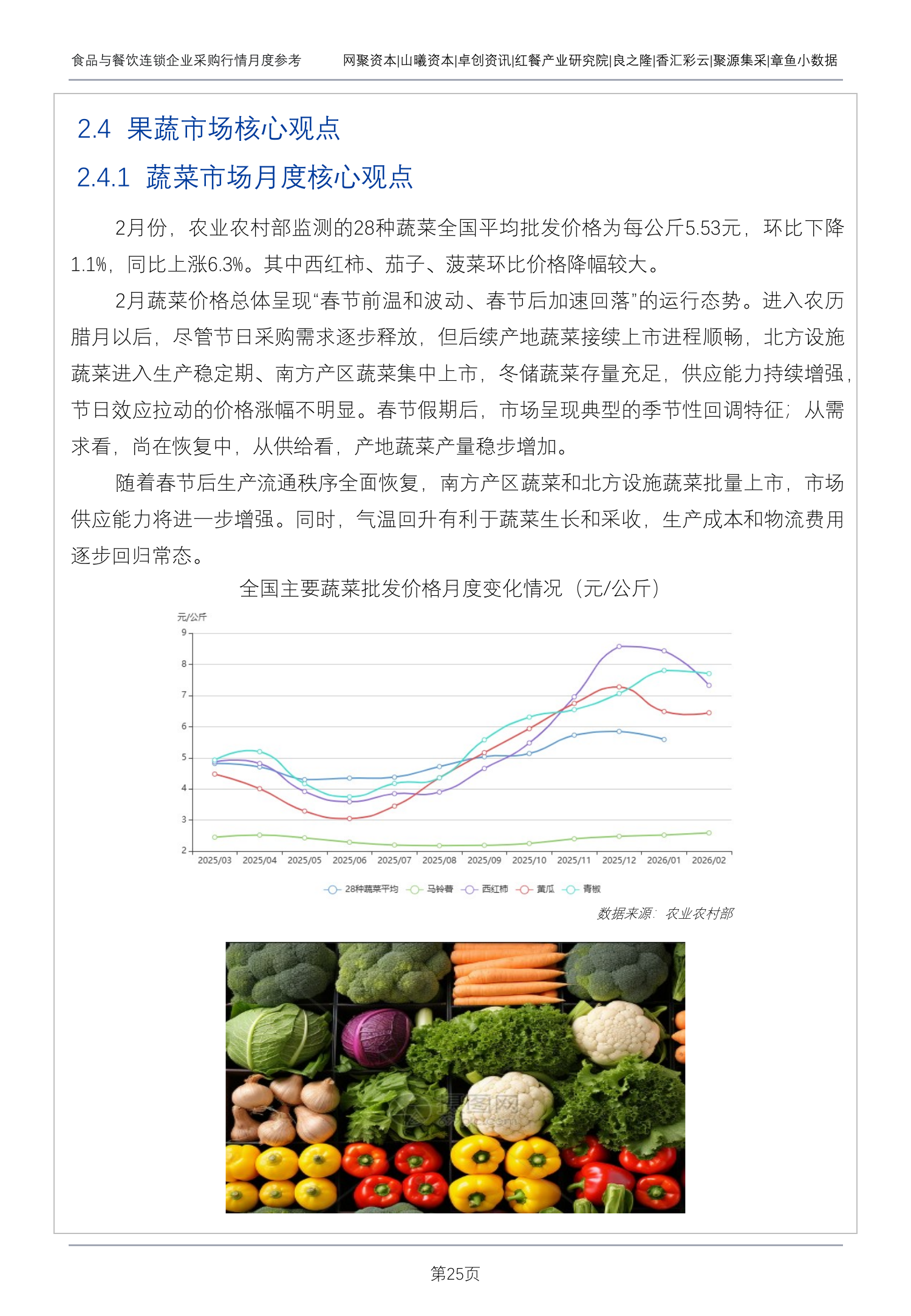 由网聚资本、红餐产业研究院、良之隆、大庄园、香汇彩云、聚源集采、章鱼小数据联合出品的《食品与餐饮连锁企业采购行情月度参考(2026.02)》正式发布。