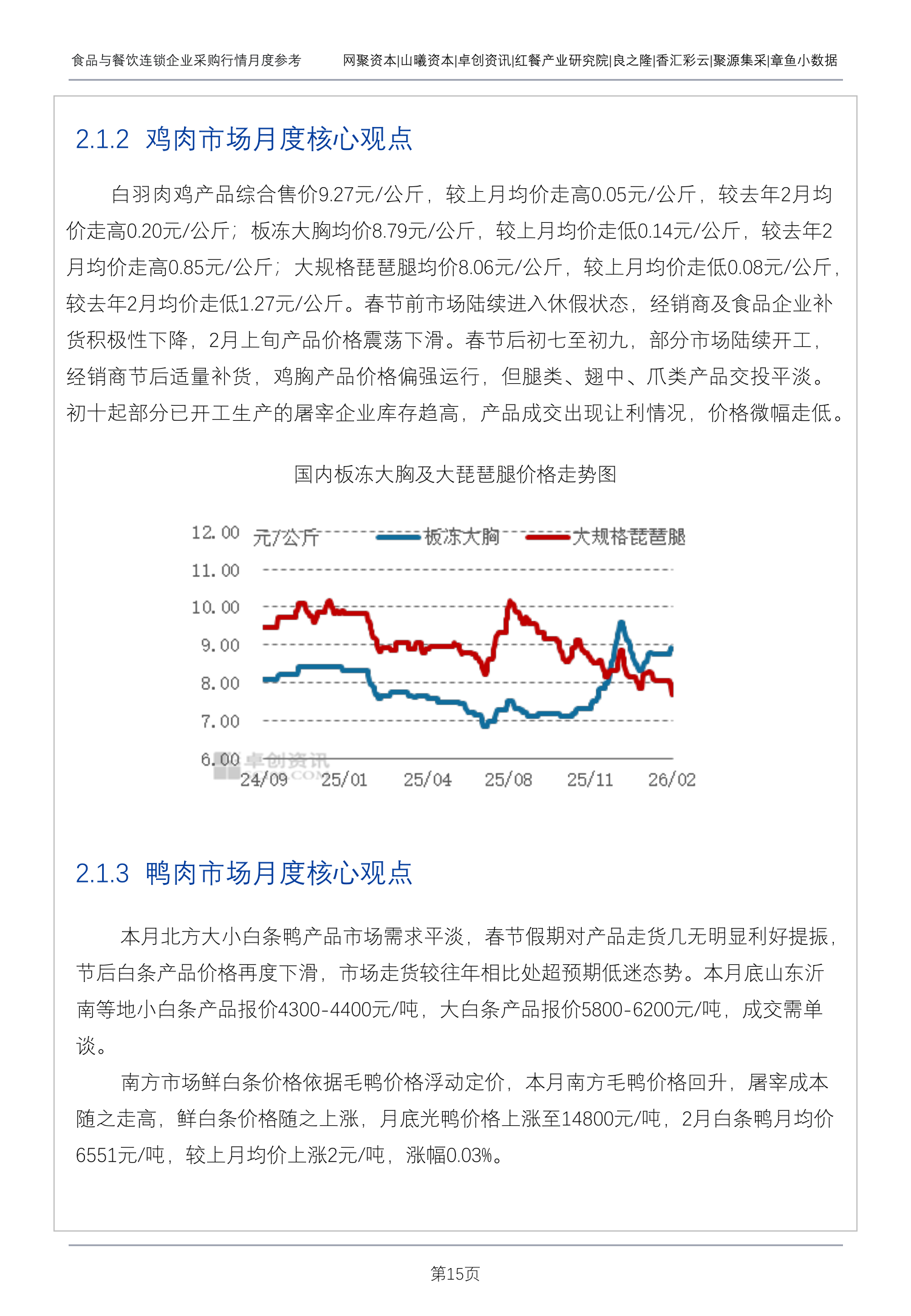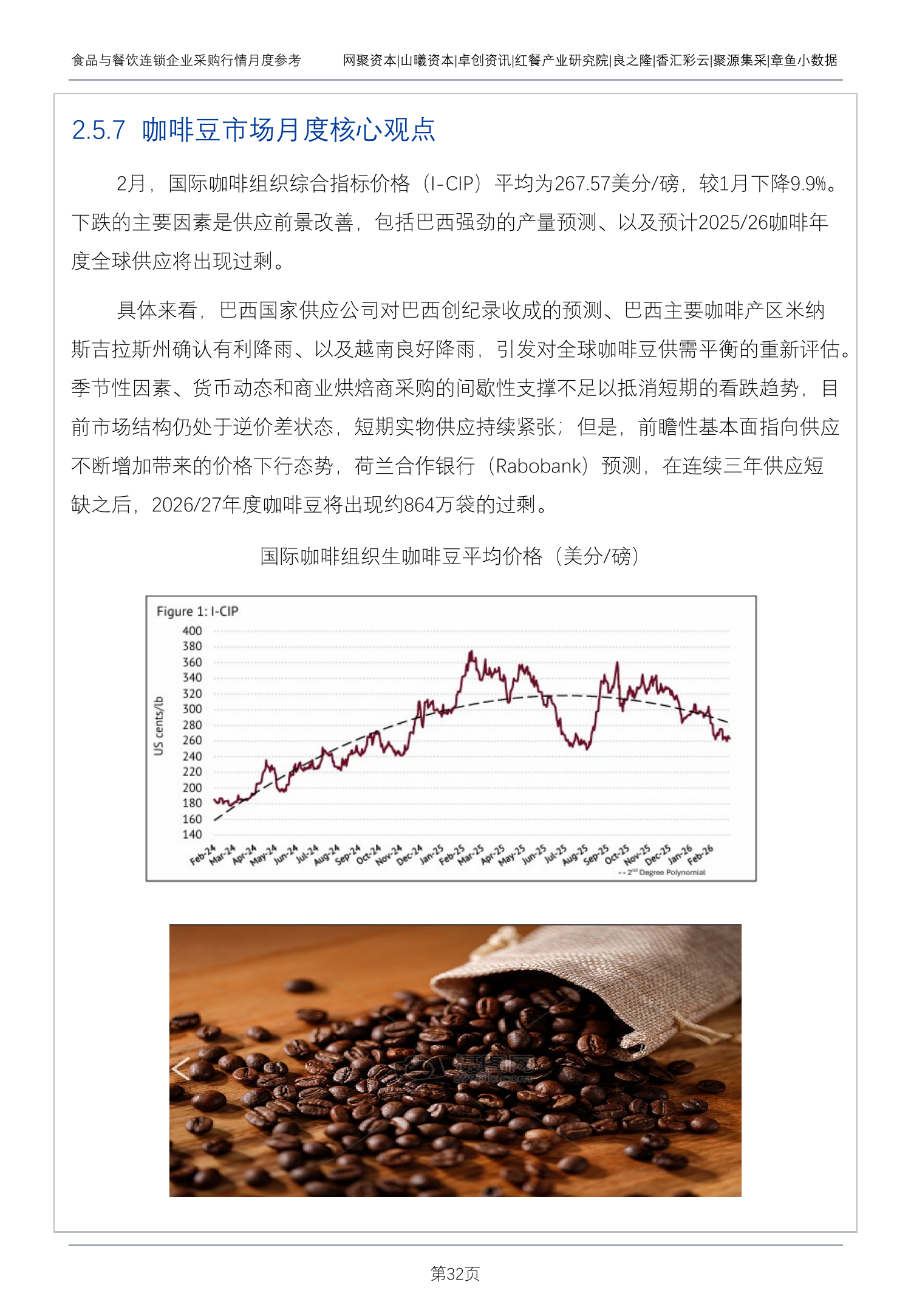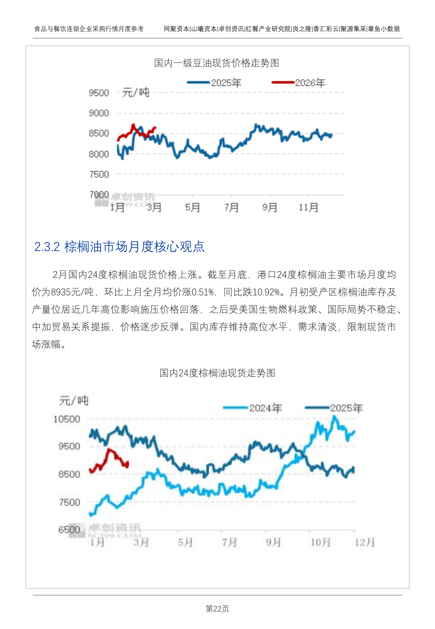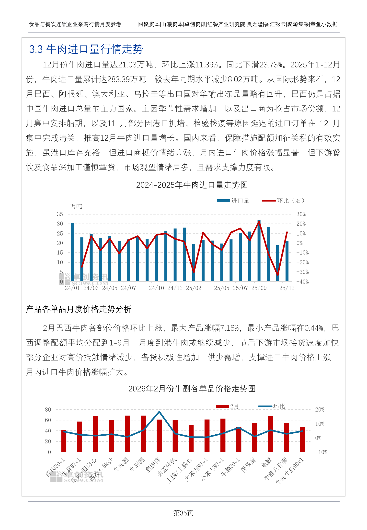 由网聚资本、红餐产业研究院、良之隆、大庄园、香汇彩云、聚源集采、章鱼小数据联合出品的《食品与餐饮连锁企业采购行情月度参考(2026.02)》正式发布。