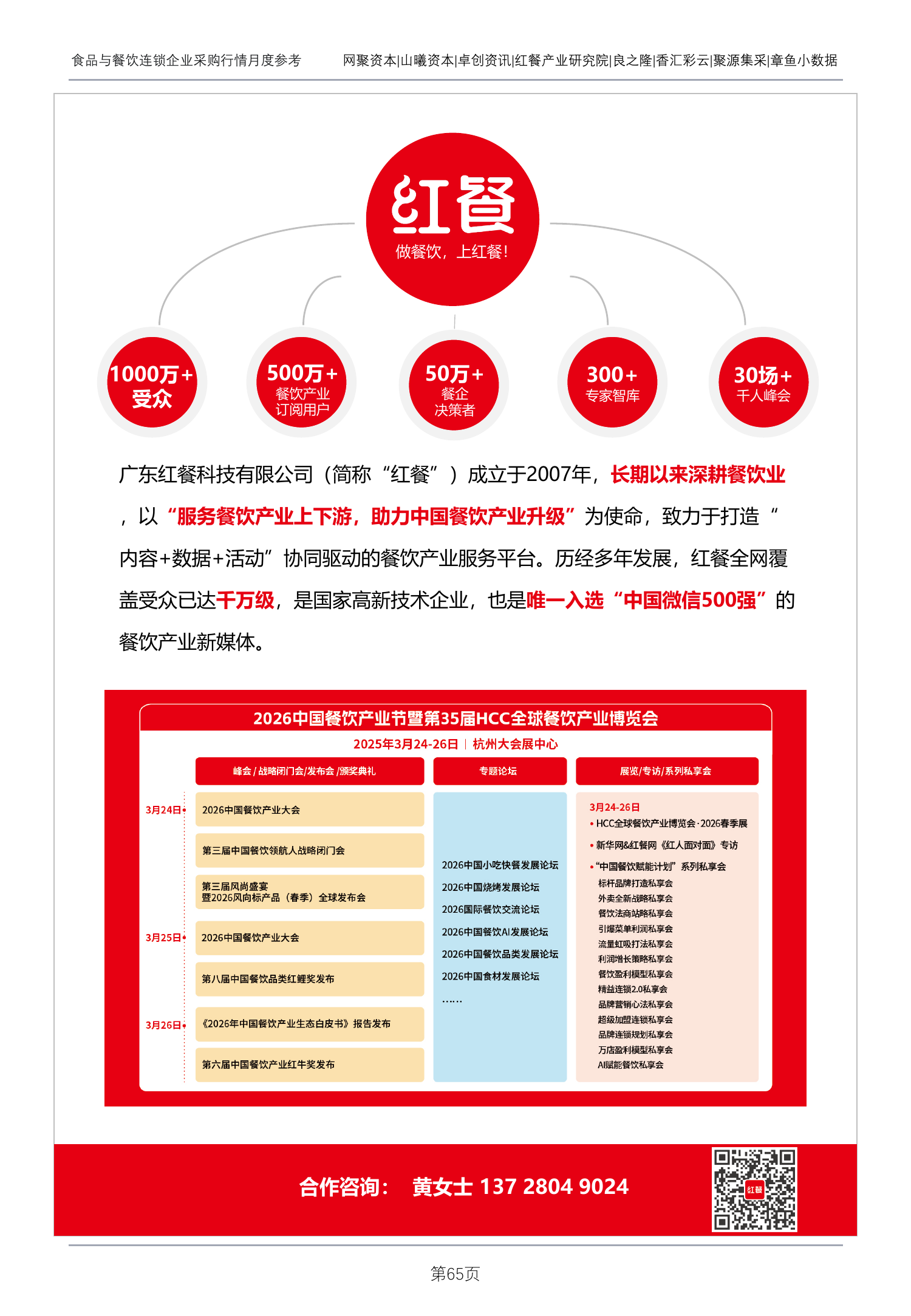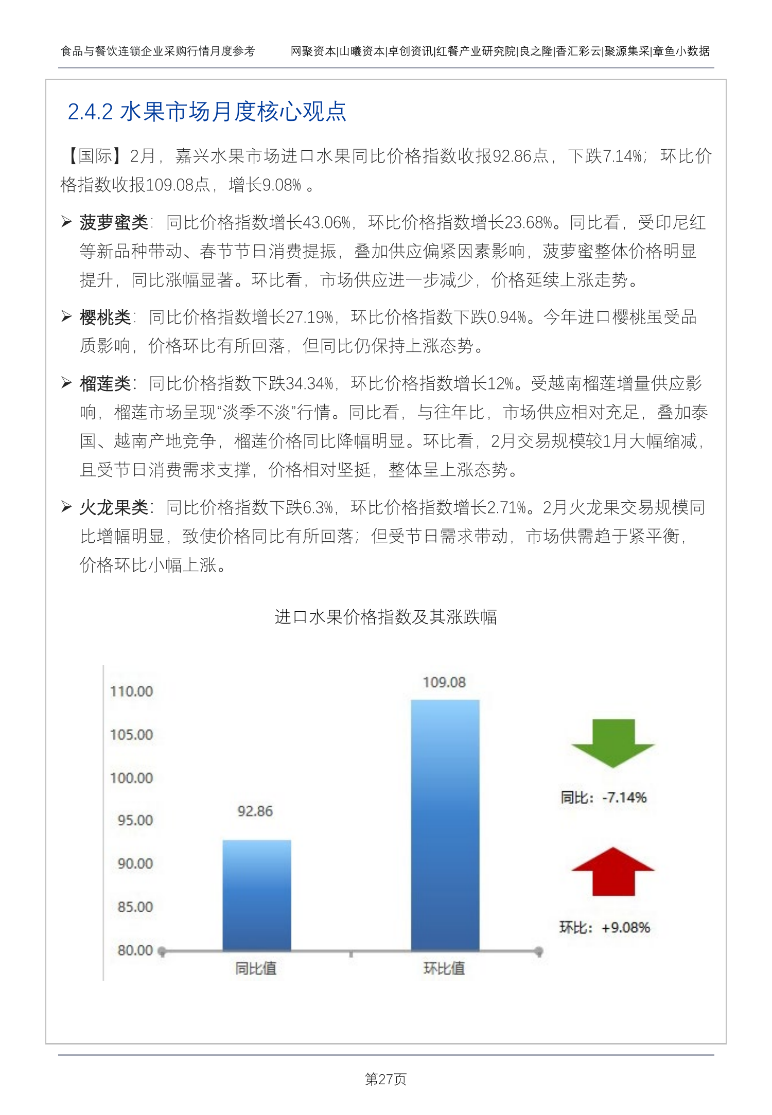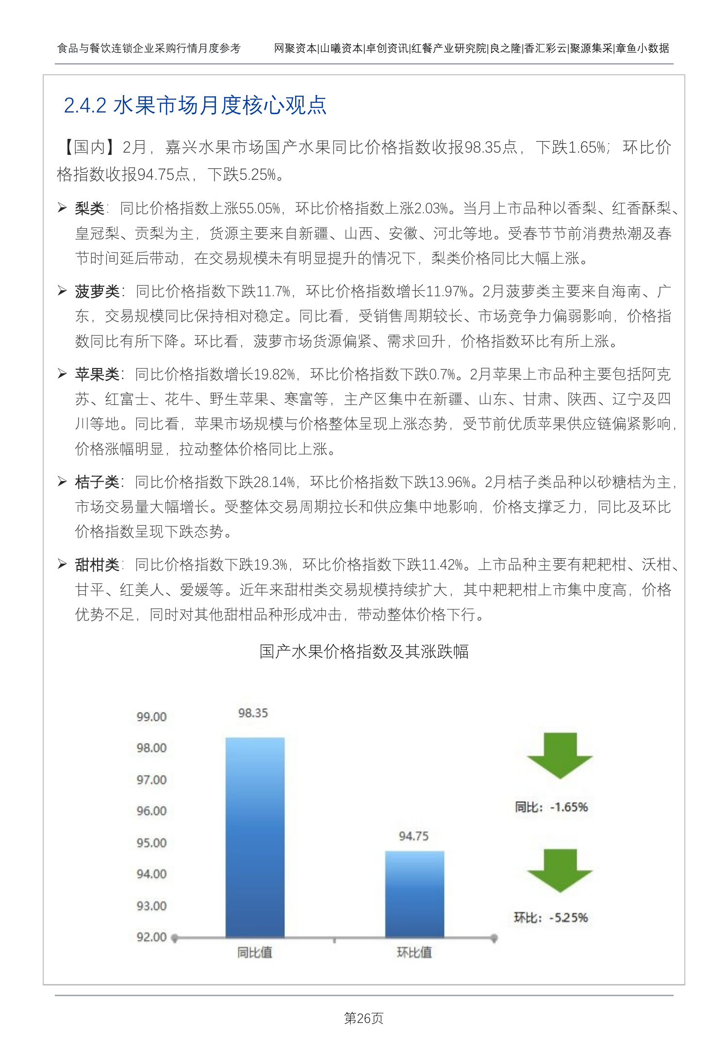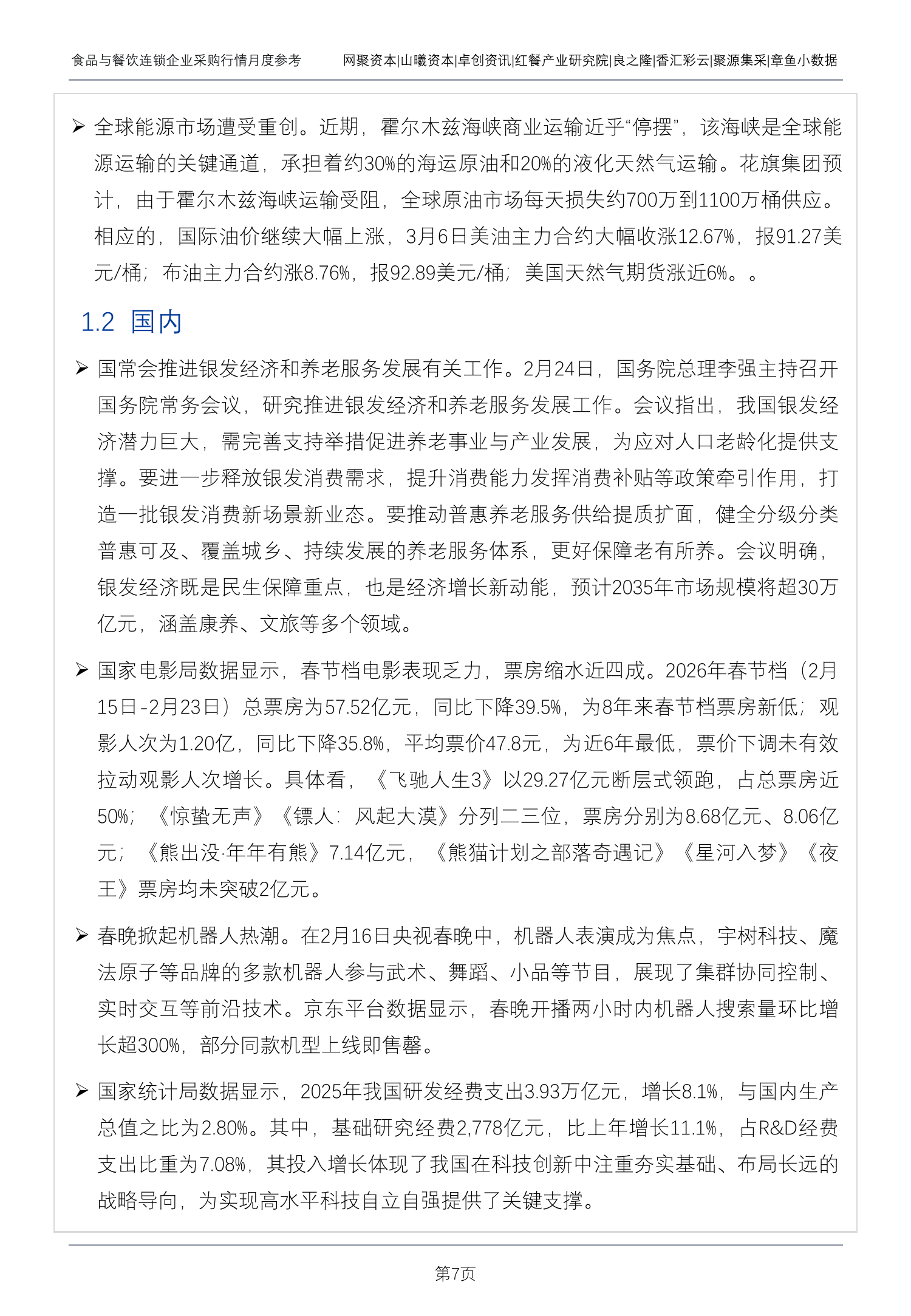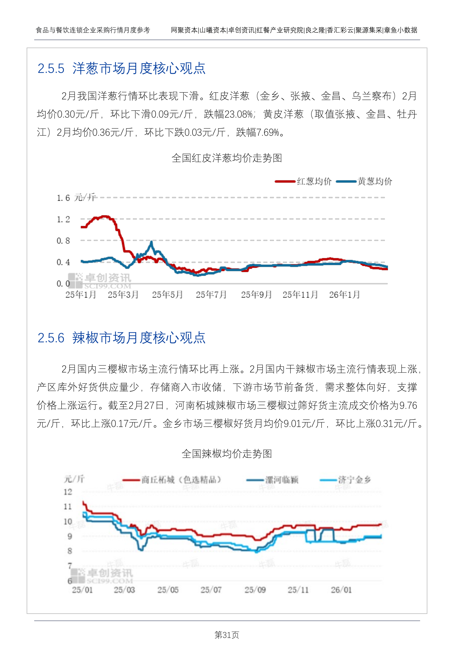 由网聚资本、红餐产业研究院、良之隆、大庄园、香汇彩云、聚源集采、章鱼小数据联合出品的《食品与餐饮连锁企业采购行情月度参考(2026.02)》正式发布。