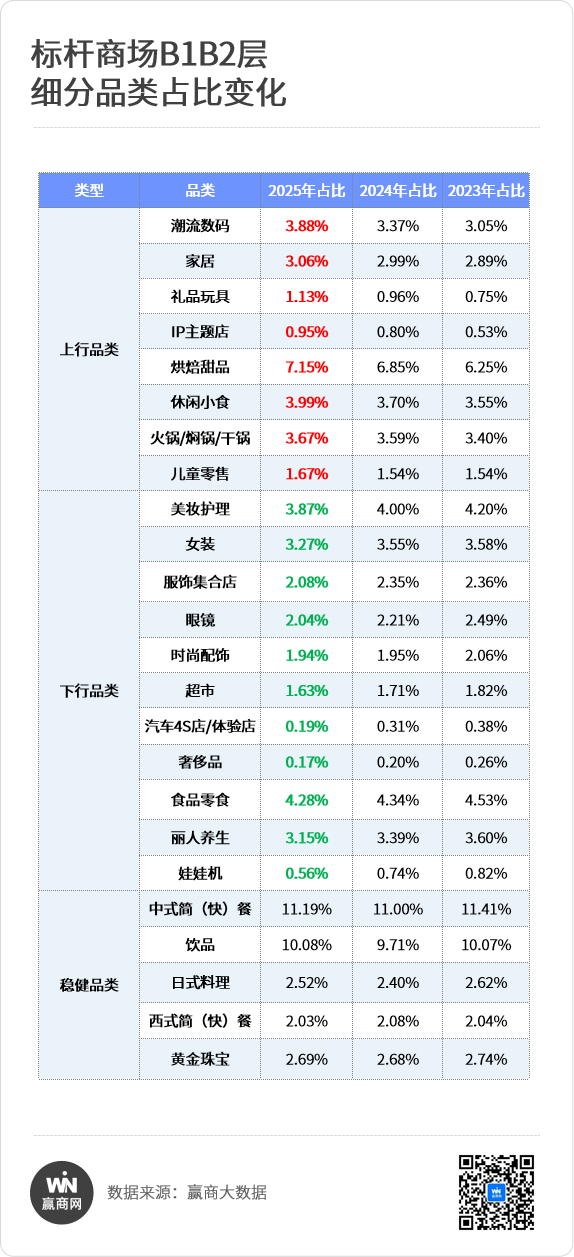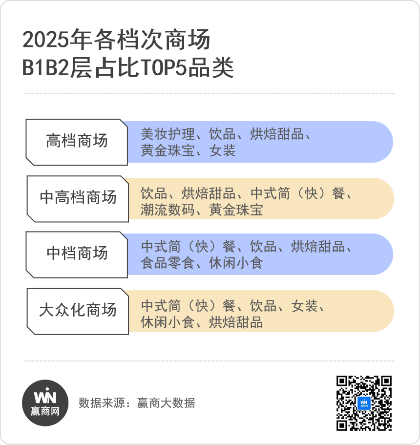 汽车4S店/体验店、奢侈品等,因其低频、高决策成本的属性,与B1B2层追求高频、流量转化逻辑相悖,持续收缩。