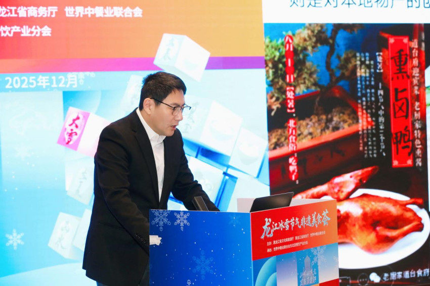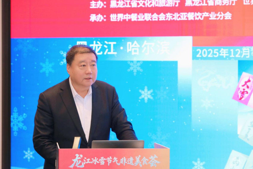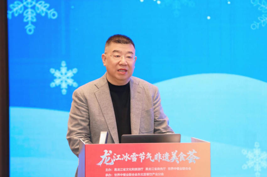 世界中餐业联合会副会长武力在致辞中说,此次活动响应黑龙江省委省政府冰雪经济发展战略,以“龙江、冰雪、节气、非遗”为核心,搭建起美食交流、文化互鉴的优质平台,展现了龙江美食的独特魅力,探索了非遗传承与文旅融合的创新路径。他表示,世界中餐业联合会始终以传承中华饮食文化、推动中餐产业发展为己任,而龙江大地得天独厚的冰雪资源、源远流长的非遗饮食技艺,与联合会的使命高度契合。坚信以美食为媒,能够让更多人领略中餐文化的博大精深,让非遗技艺在时代浪潮中生生不息,让冰雪经济与餐饮产业实现双向赋能、共赢发展。