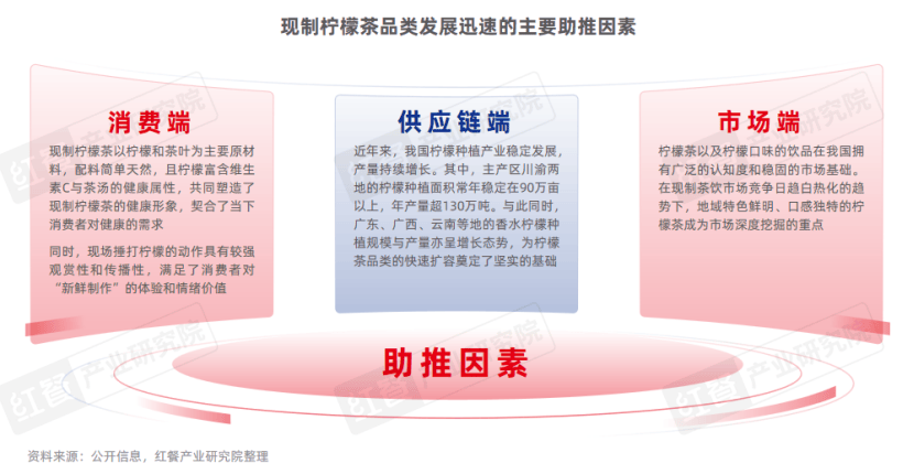1.消费、供应链和市场三方面驱动现制柠檬茶品类快速发展