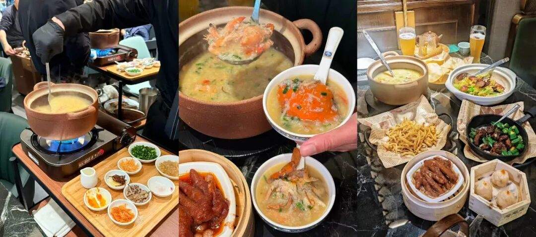 “现炒虾蟹粥由厨师现场烹饪,滚烫上桌,米粒煮到开花,鲜到眉毛都掉了!”
