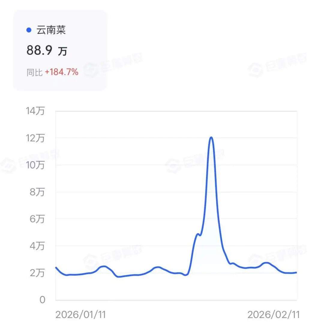 抖音指数显示,今年以来“云南菜”搜索指数同比增长高达184%,越来越多消费者被其鲜明的酸辣鲜香、山野气息以及独特的地域食材所吸引。