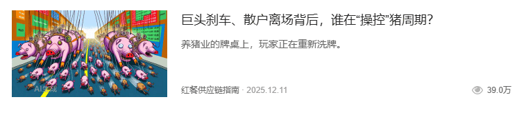 当看到《32亿负债缠身,“猪肉大佬”的预制菜梦,还能撑多久?》《专家预测90%的预制菜企业将消失,谁会是幸存者?》等多篇文章被“虎嗅APP”公众号转载;《巨头刹车、散户离场背后,谁在“操控”猪周期?》《中央出手调控牛肉价格,牛肉产业要变天?》《比黄金涨幅还高!咖啡豆价格连涨1年后,从业者们还淡定吗?》等多篇文章入选钛媒体的主编精选文章时,我们再次意识到,在信息过载的时代,清醒而深度的观察依然稀缺,且被需要。
