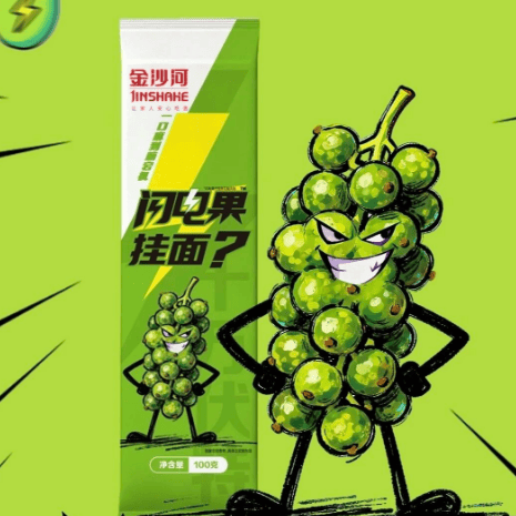 金沙河推出新品闪电果挂面,在挂面中加入青花椒碎,根根挂椒碎,麻香才够味。选用优质青花椒原料,打开包装闻上瘾,麻香纯粹,一口上头,麻感全面开挂,挑战极限酥麻。(金沙河集团)
