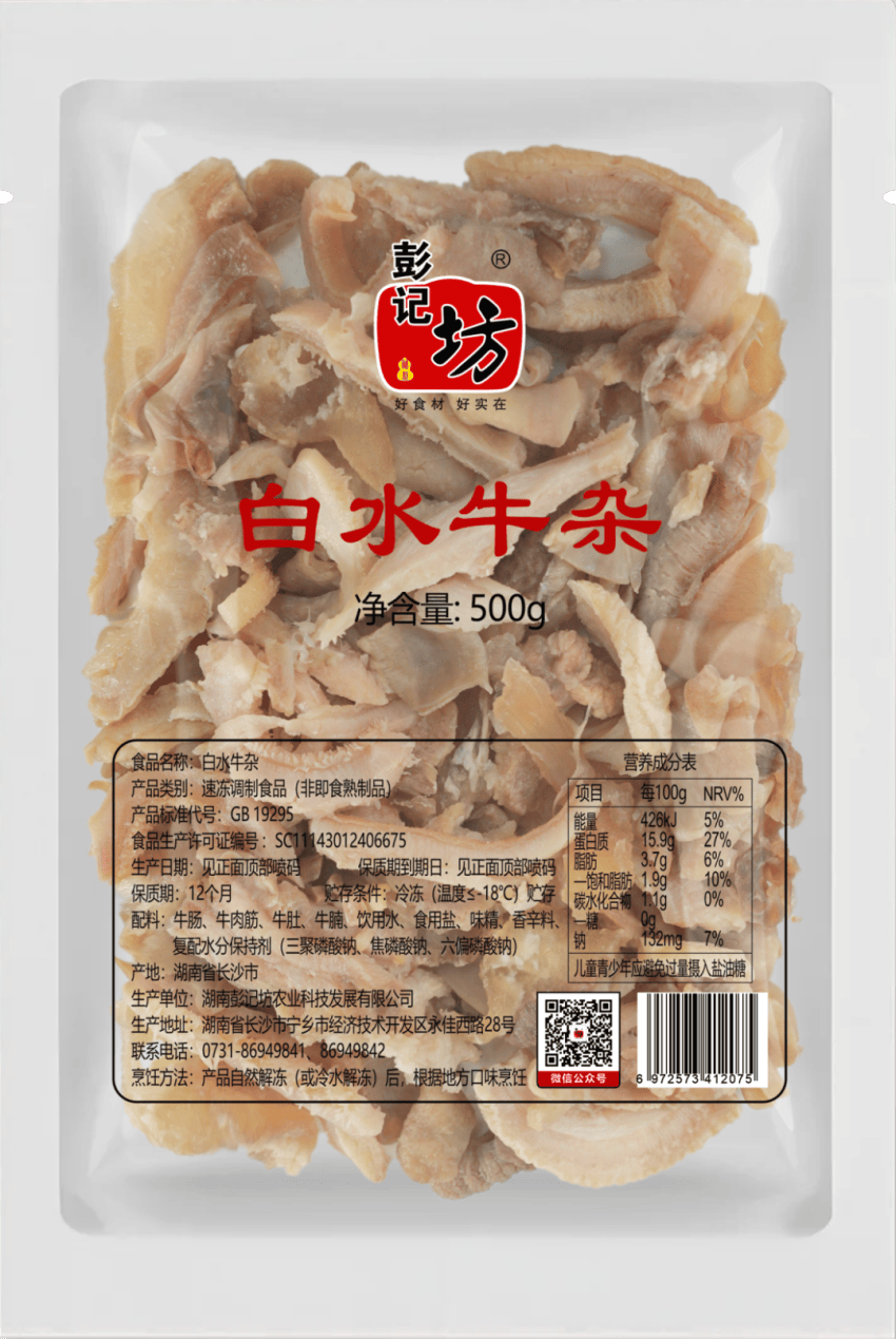 目前,彭记坊主要提供大型连锁酒店供应、军队供应和定制服务,其菜品方便二次加工,应用灵活。以白切猪肚为例,其猪肚为全熟整肚封装,开袋后可按需切配,适用于小炒肚丝、酸辣肚米、白切肚片、胡椒猪肚鸡等,应用灵活,菜式多变。