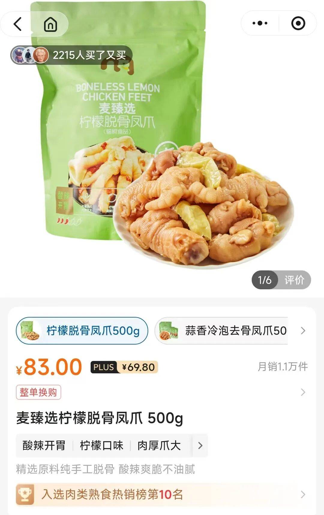 如果再给这只鸡脚脱骨,单价还能再往上。麦德龙一袋500g的麦臻选柠檬脱骨凤爪,标价83元。虽然有卤料、人工、包装的成本叠加,但鸡爪本身变贵仍是涨价的大头。