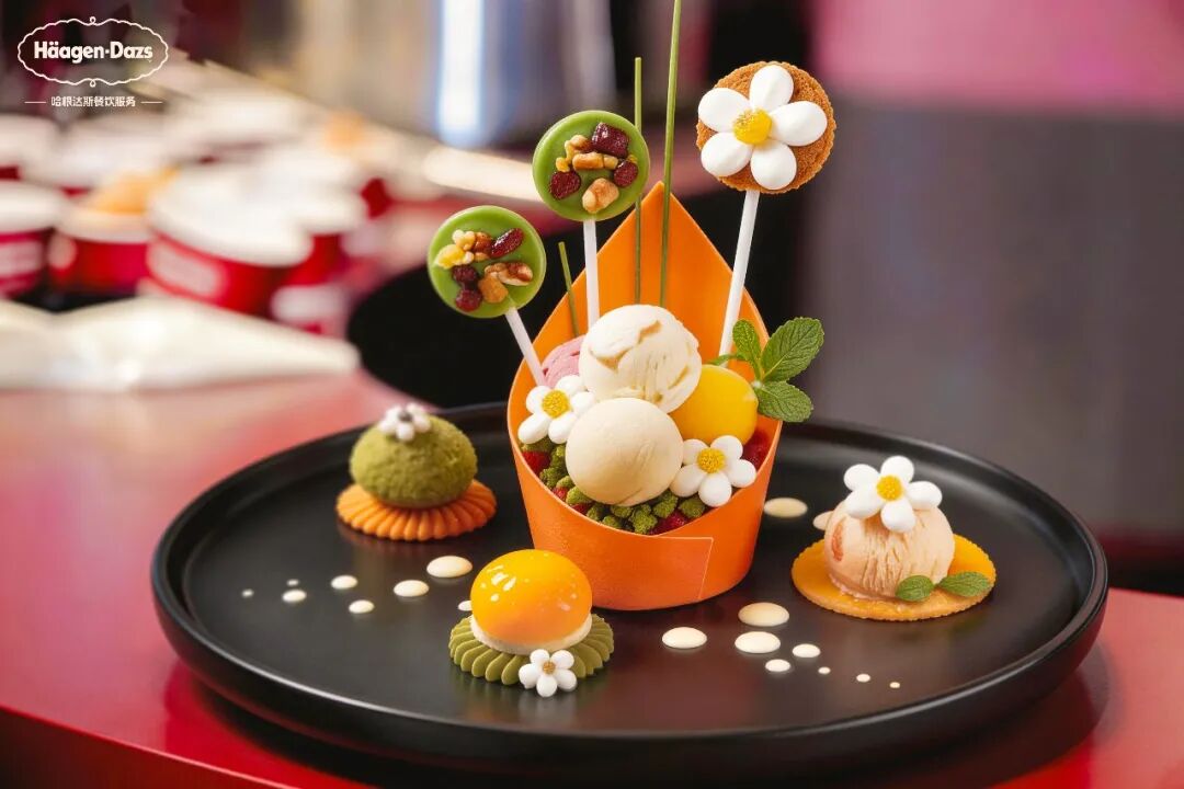 事实上,针对中式正餐等各类消费场景,哈根达斯还提供了专业的味觉搭配方案。比如将冰淇淋与中式时令食材结合,从风味到质地,让每一道融合甜点都既有格调,又能提升用餐体验的满意度,实现体验升级。