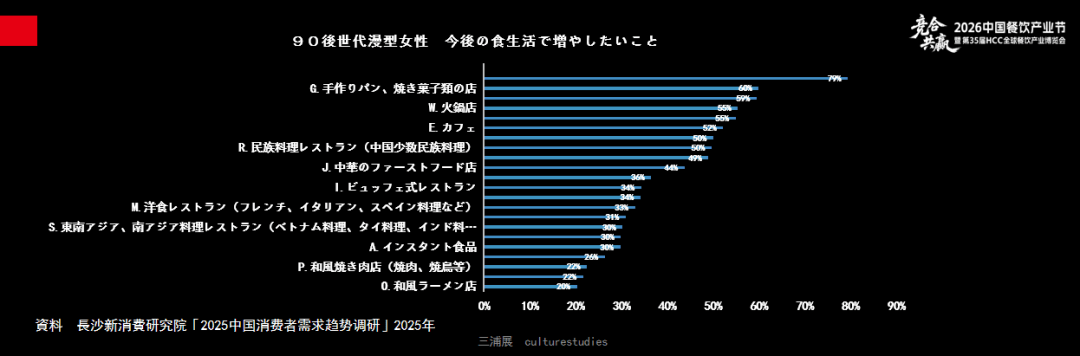 去年,我和长沙新消费研究院做了一个调查——90后的女性希望增加什么样的餐饮类别,其中79%的年轻女性在追求有机健康的食物,比如手工制作的面包和糕点等。对于中国的年轻女性来说,有机、手工还有慢烹饪等价值观会受到更多人的支持。