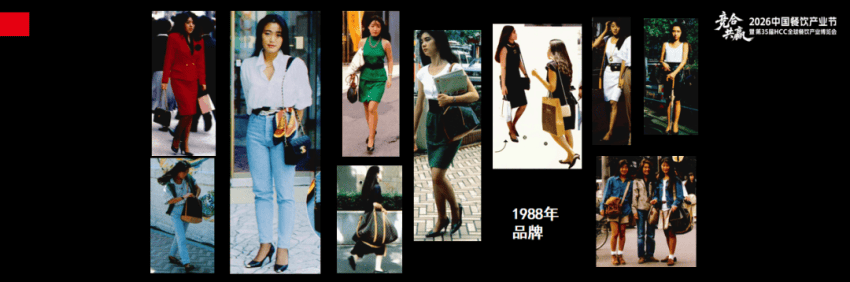 1988年,我在涉谷市场做市场营销工作的时候拍摄了一系列的照片,发现东京街头有这样的景象。当时的日本女性拥有非常多名牌,她们会买LV、香奈儿等产品。同时也有一些女性群体对奢侈品不是很感兴趣,追求个性穿着,她们不再遵循主流的审美,分化成了基于感性和情绪共鸣的小众圈层。