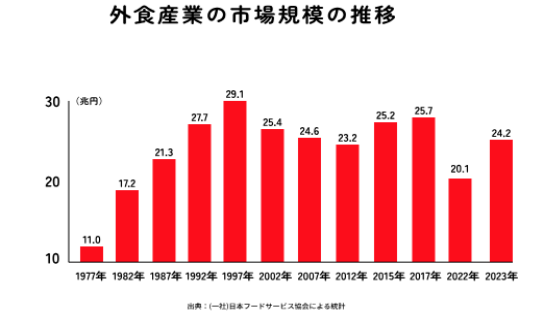 进入第四消费社会后(1998—2020),因为经济下行、人口减少,餐饮行业市场规模开始下滑。劳动人口在下降,小孩的数量也在下降,经济增长放缓,日本迎来了“失去的20年”,餐饮产业为了提升销售,采取的方式就是去做一些高附加价值化或者高档化的变化。