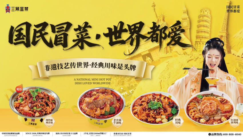 不只是门店空间和产品的升级,在此次品牌5.0升级中,三顾冒菜还公布了“国内与海外,双线成长与扩张”的市场战略计划,即在巩固国内市场的同时,加速海外布局,让非遗冒菜走向更广阔的国际市场。