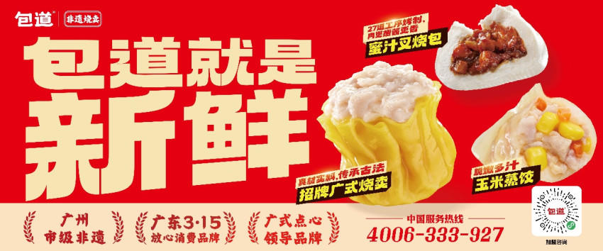 包道集团凭借其一贯卓越的产品品质和坚实的诚信经营体系,连续两年入选“广东3·15放心消费品牌”,成为“食在广州”地标美食代表品牌。